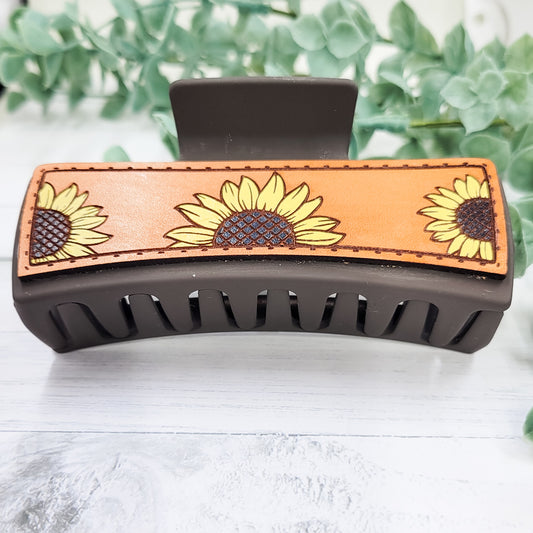 Handpainted Leather Sunflower Claw Clip