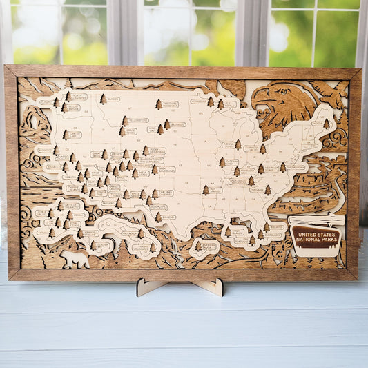 "Wildlife" US National Parks Tracker Map - 18x11