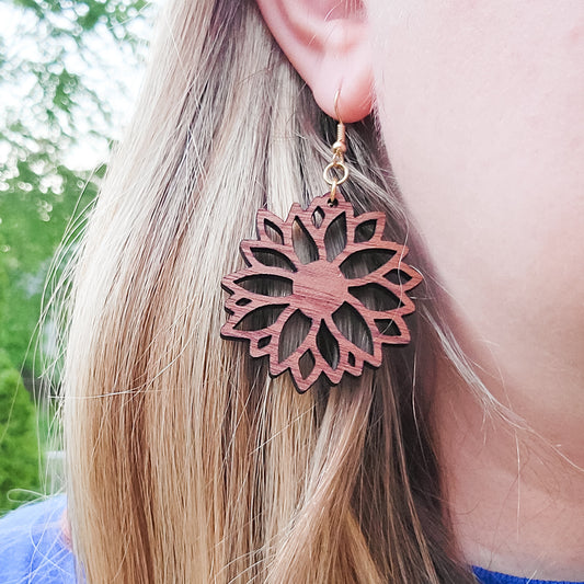 Leopard Engraved Pumpkin Wooden Dangle Earrings