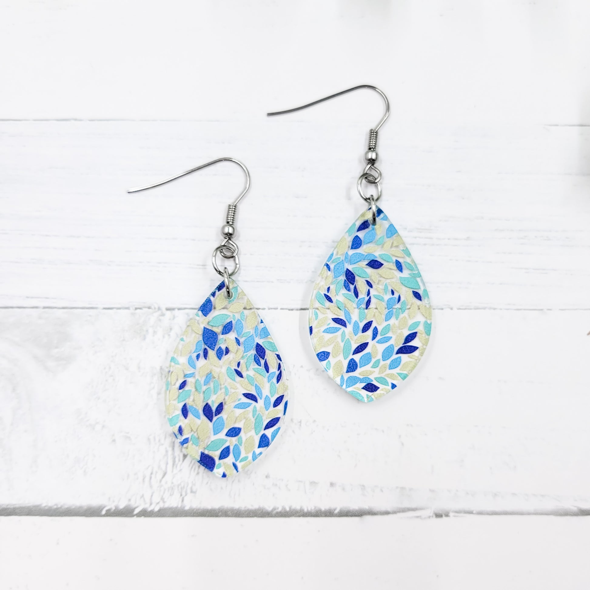 Beach Mosaic Acrylic Pointed Teardrop Dangle Earrings