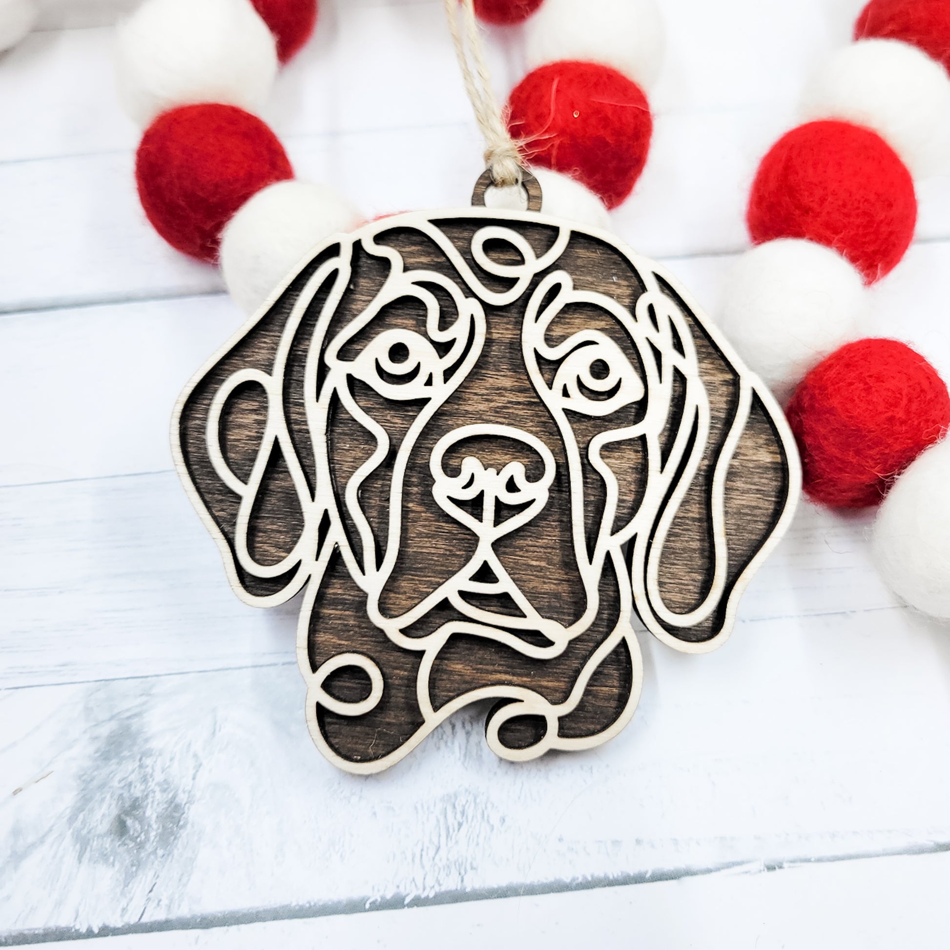 Beagle Line Art Wooden Ornament