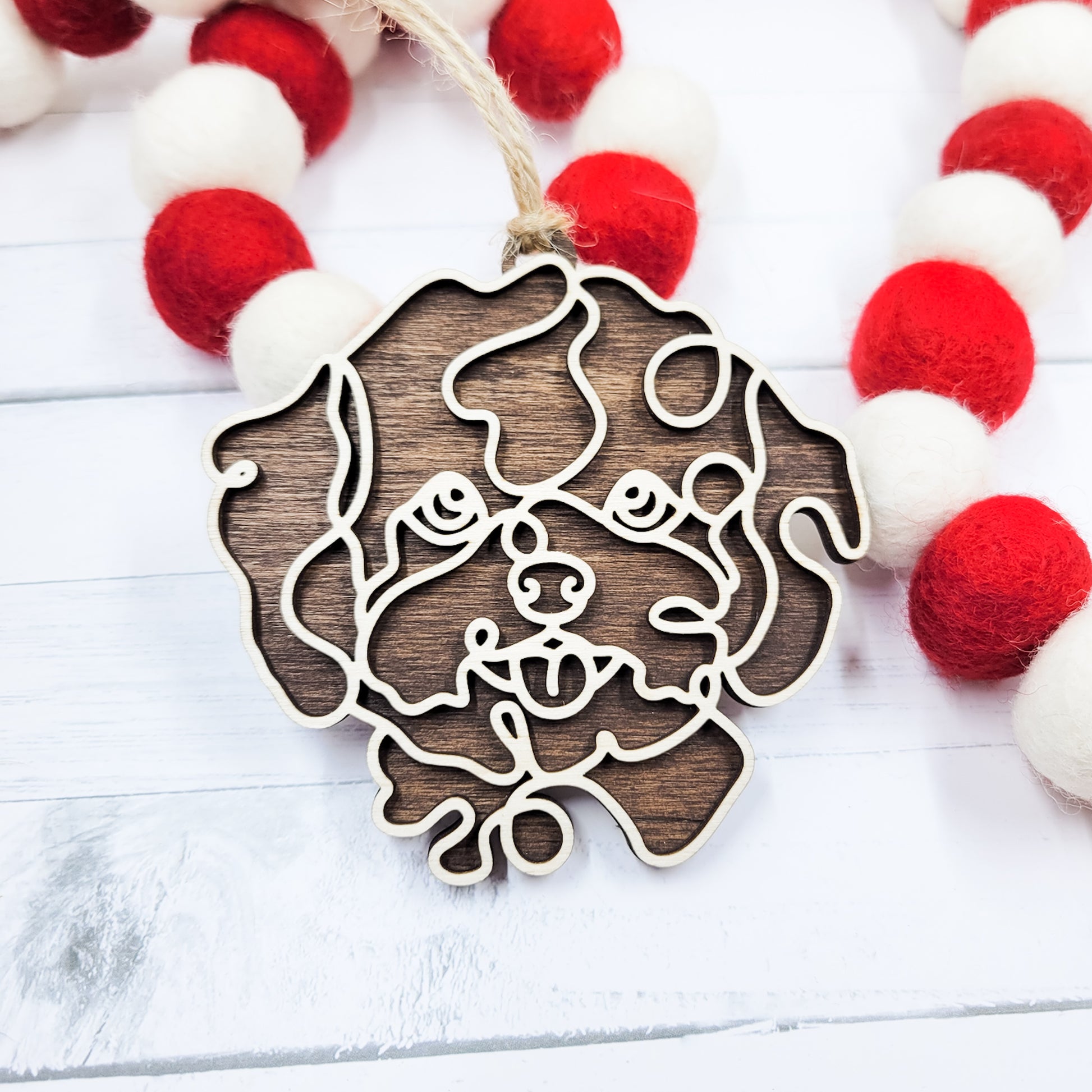 Ornaments are made from birch wood and may naturally darken over time. Ornaments measure 3.75" at their widest point and come with twine for hanging.