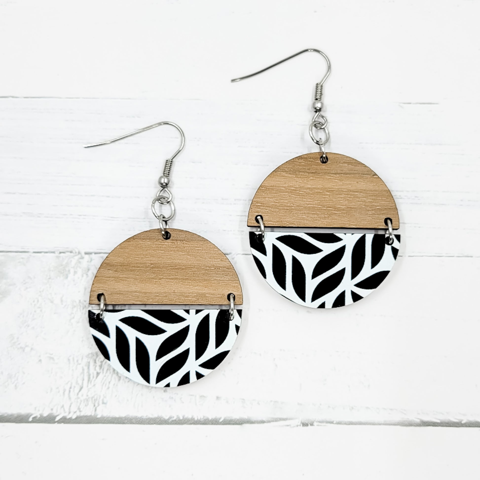 Black Leaves Acrylic Split Circle Dangle Earrings