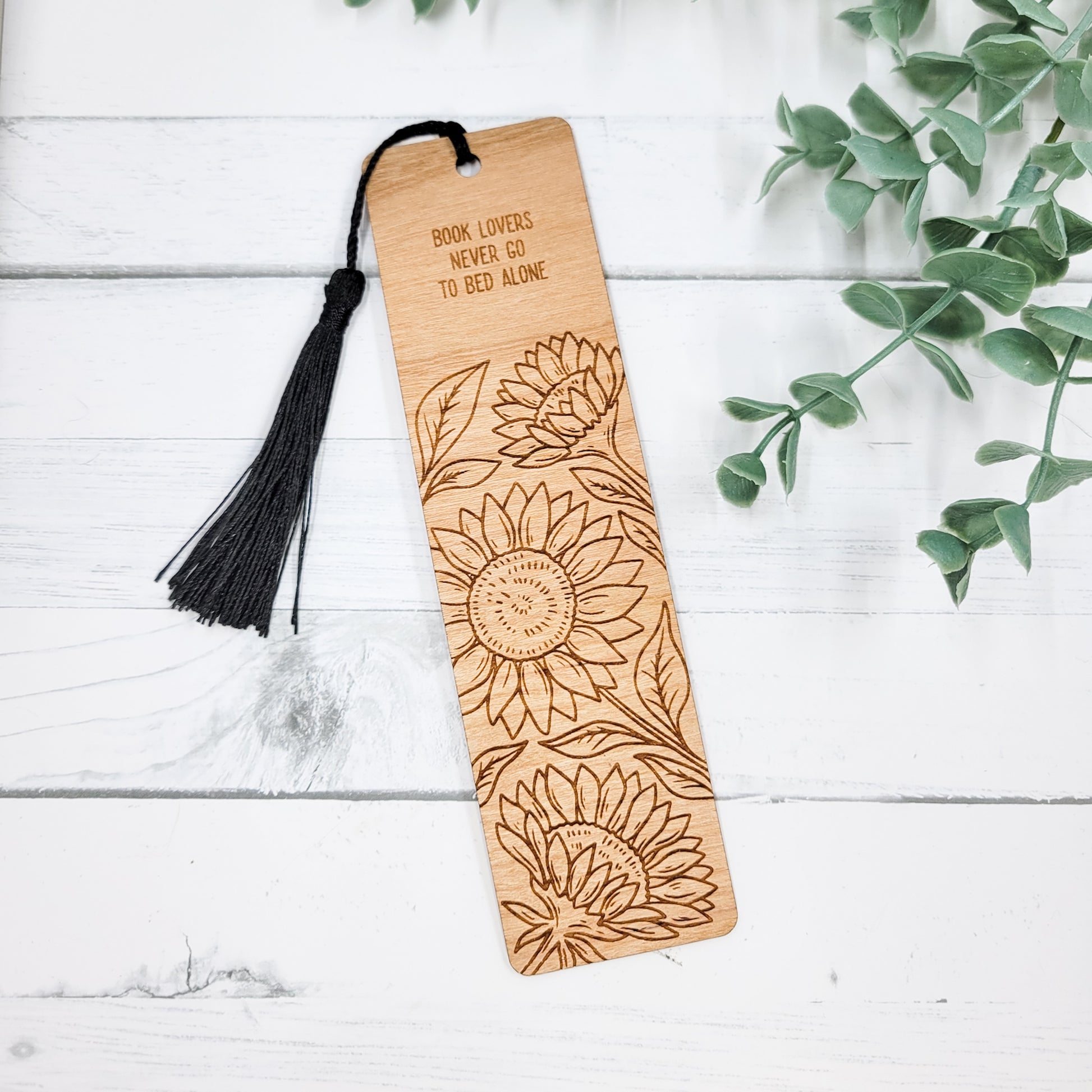 Book Lovers Never Go To Bed Alone Floral Wooden Bookmark