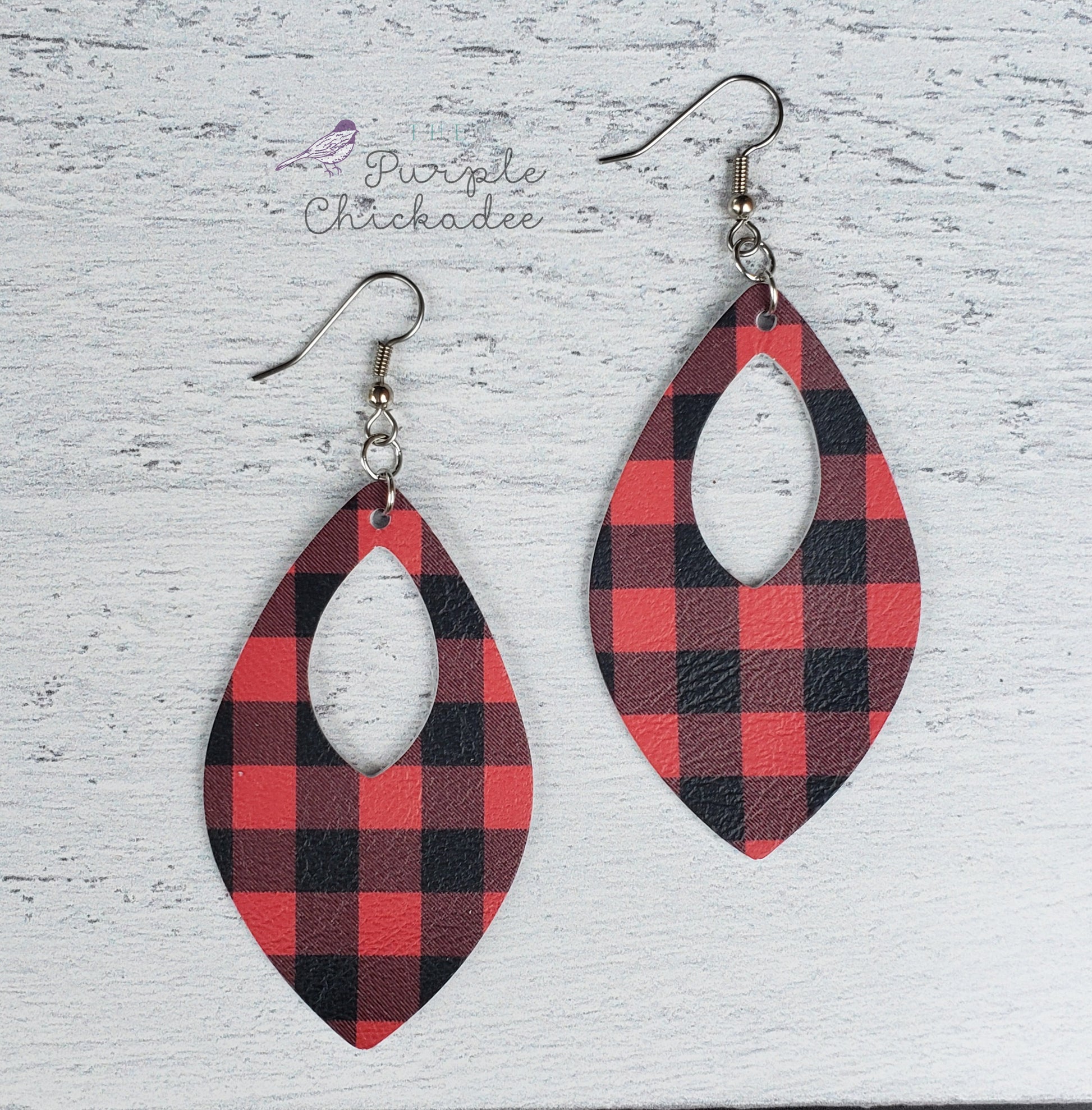 Buffalo Plaid Leather Open Teardrop Earrings