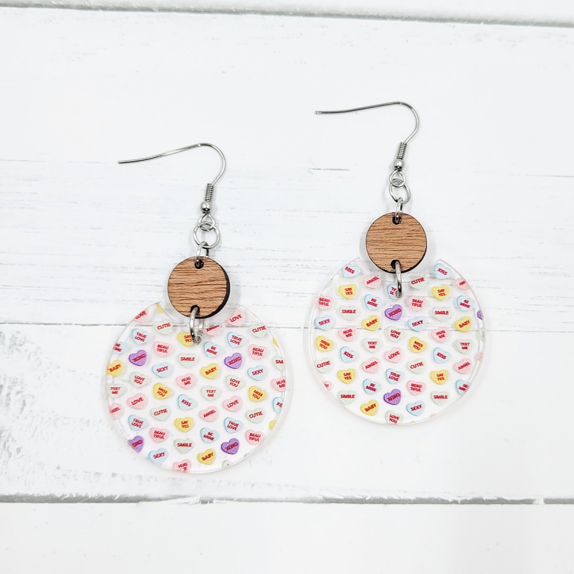 Candy Heart Clear Acrylic Semi Circle Dangle Earrings
