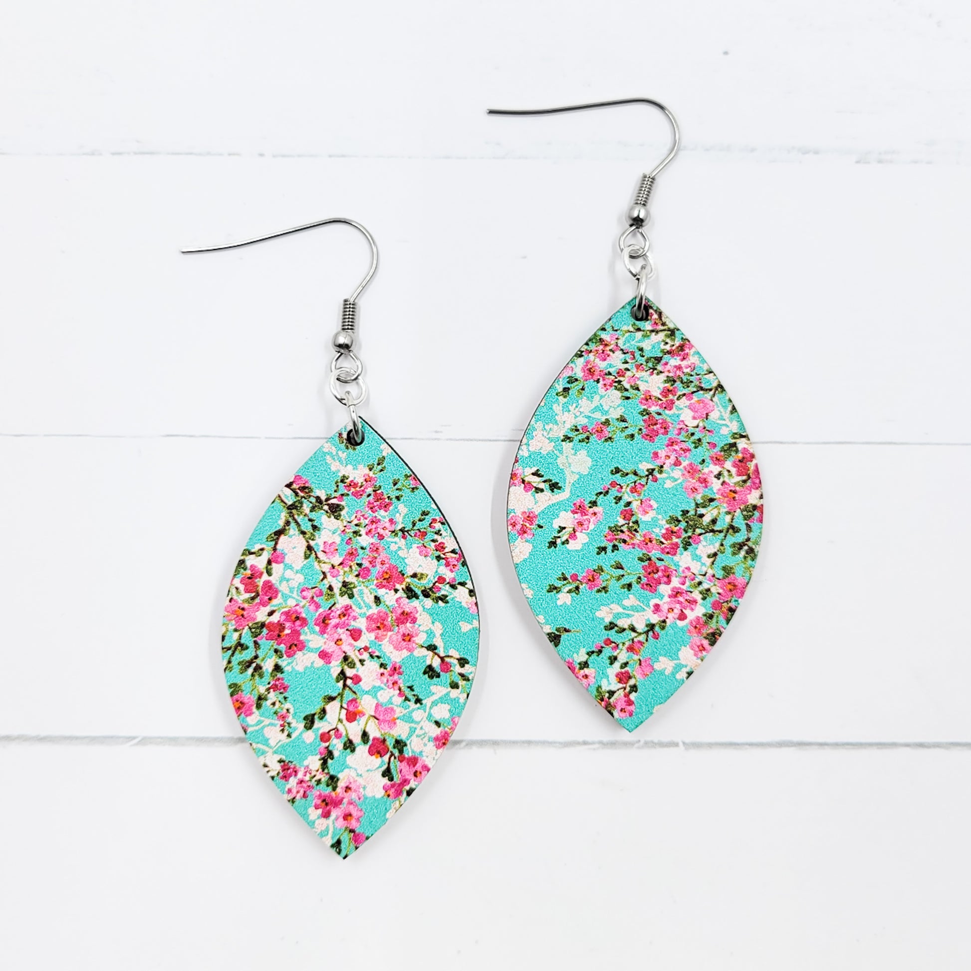 Cherry Blossom Pointed Petal Wooden Dangle Earrings