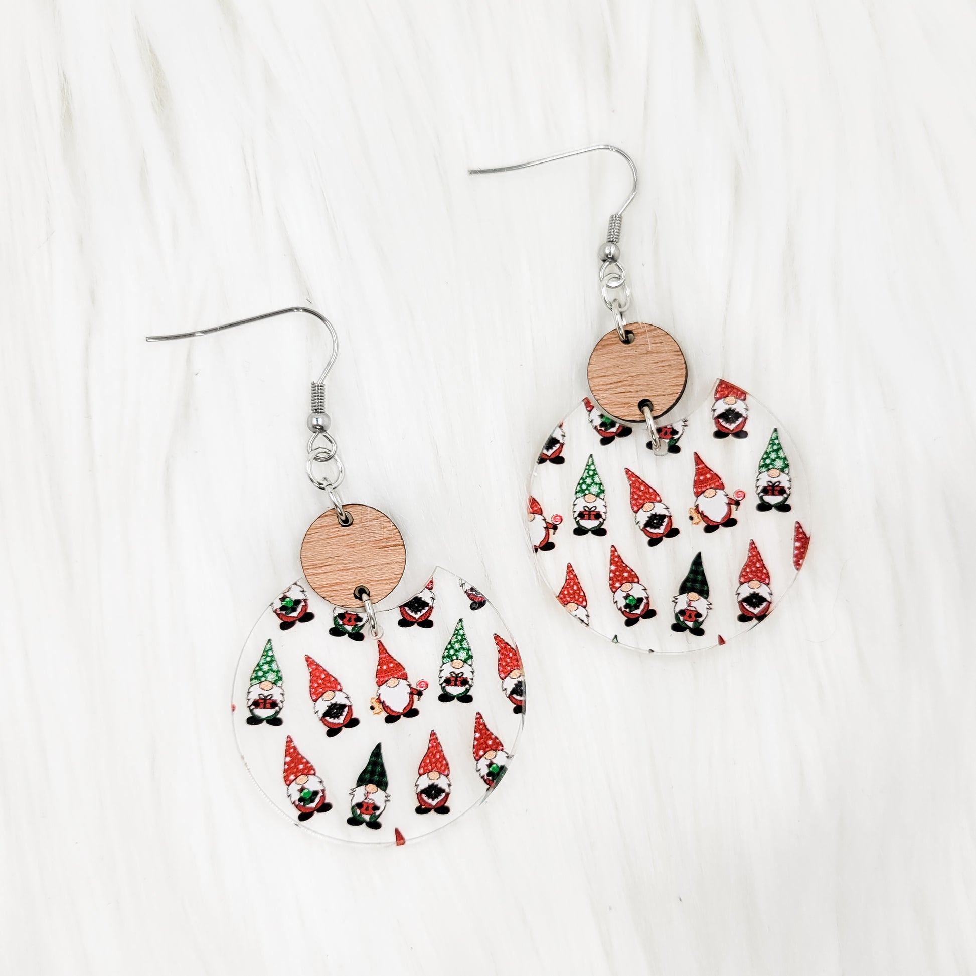 Christmas Gnomes Acrylic Semi Circle Dangle Earrings