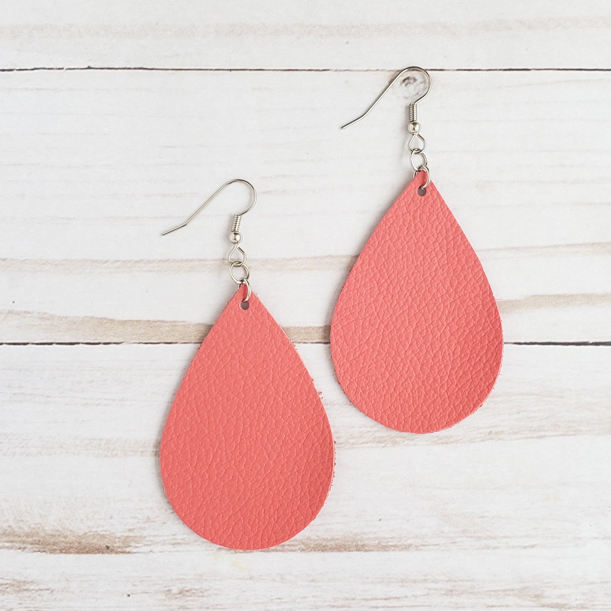 Coral Leather Drop Earrings