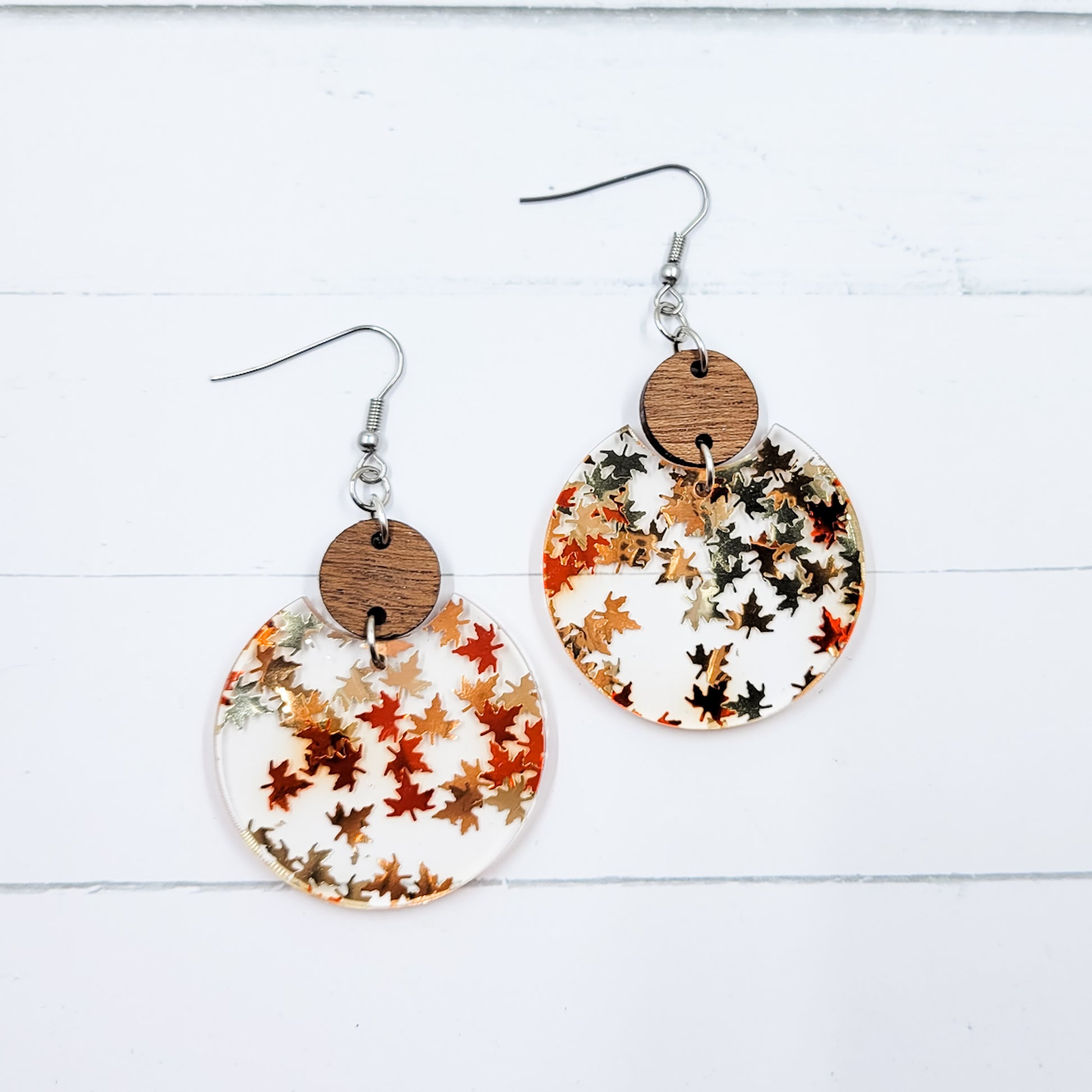 Fall Leaves Acrylic Semi Circle Dangle Earrings