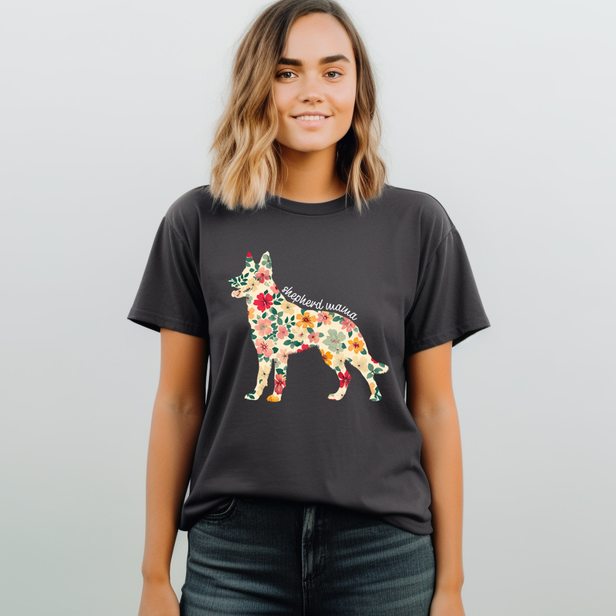 Show off your dog mom pride in the cutest way possible! Our Floral Shepherd Mama Tee is made for all the German Shepherd -loving mamas out there who want to wear their heart (and pup) on their sleeve.