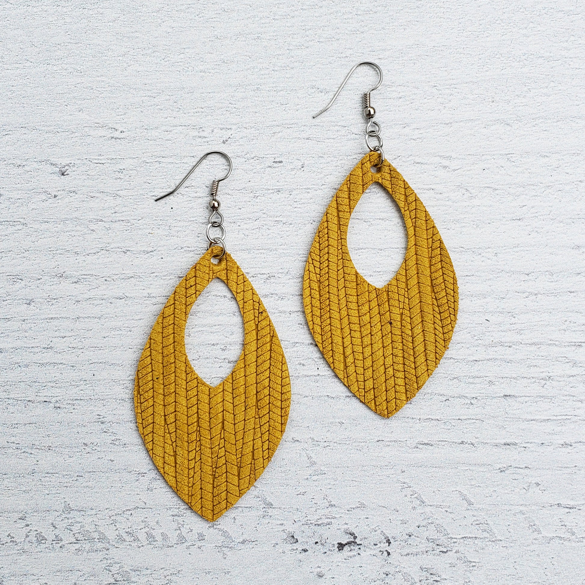 Golden Yellow Leather Open Teardrop Earrings