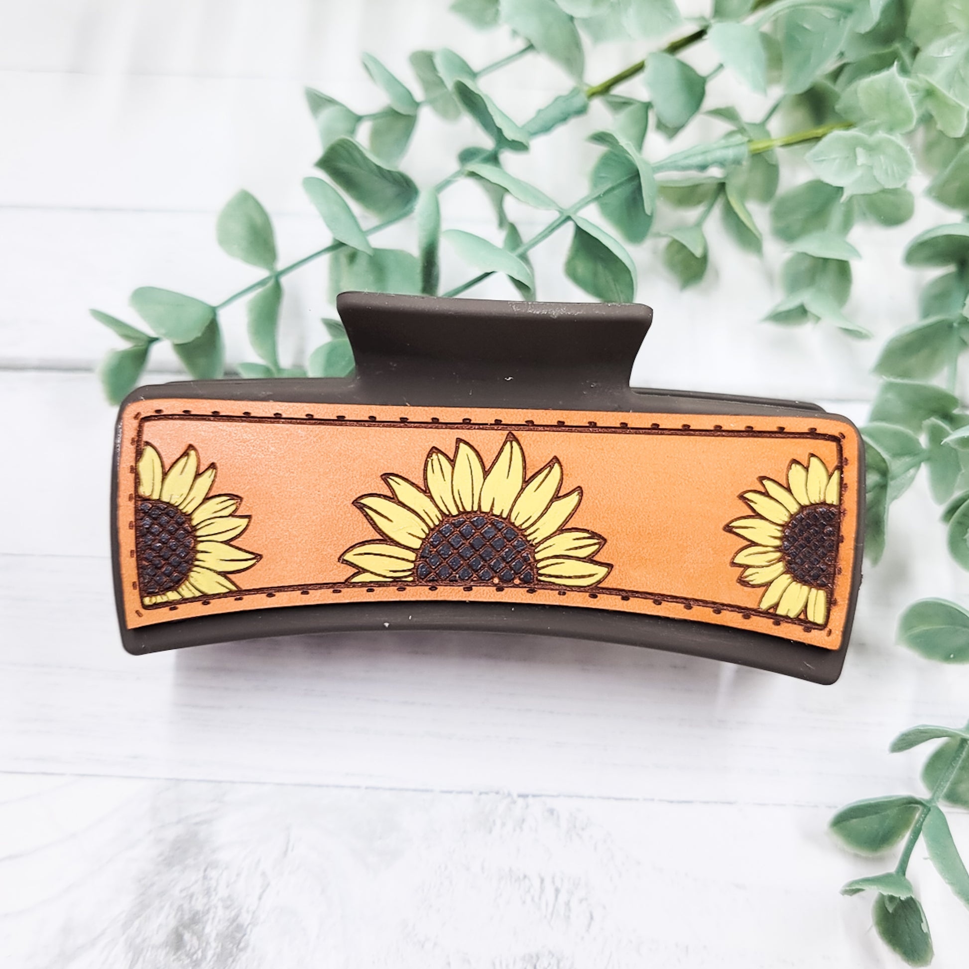 Claw clips are all the rage again! Grab this Handpainted leather sunflower clip to add a little sunshine to your hair!