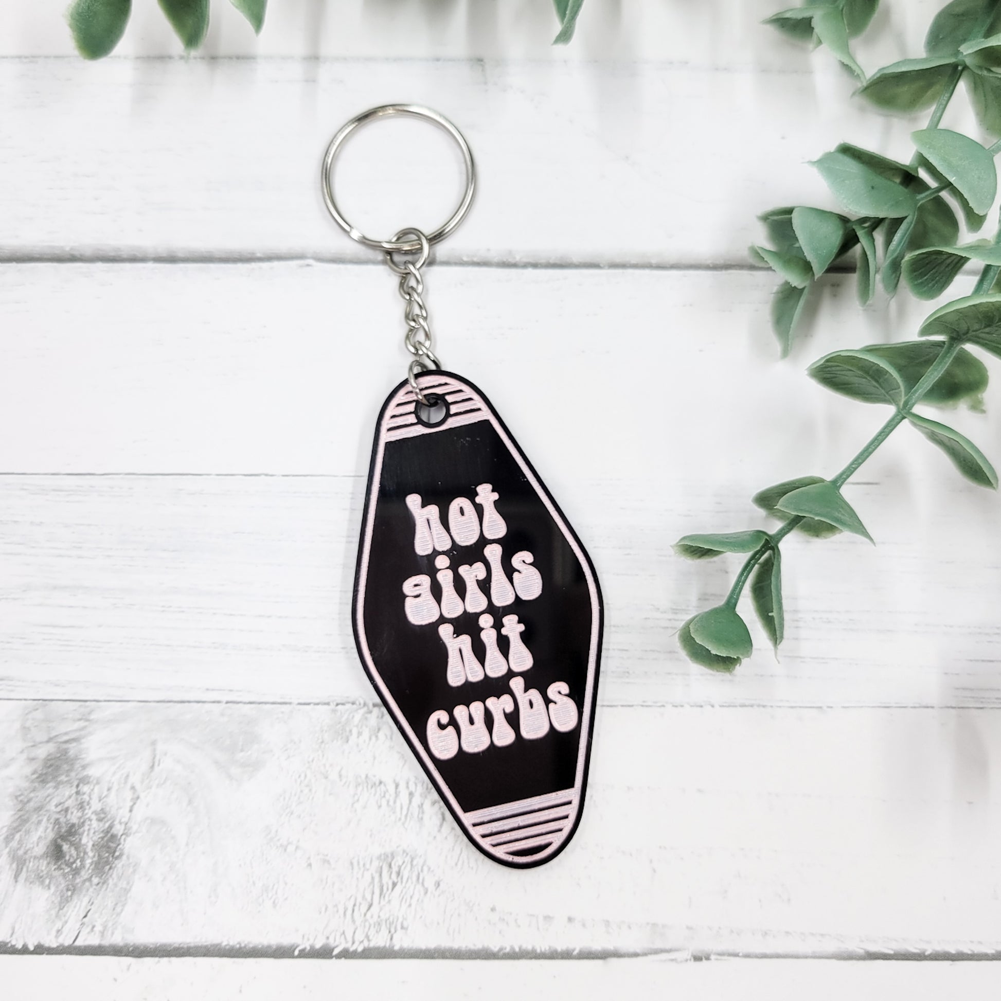 Hot Girls Hit Curbs Black & Pink Hotel Keychain