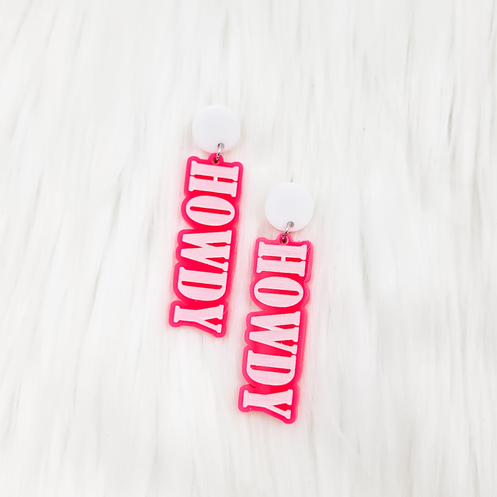 Howdy Hot Pink Engraved Acrylic Stud Earrings