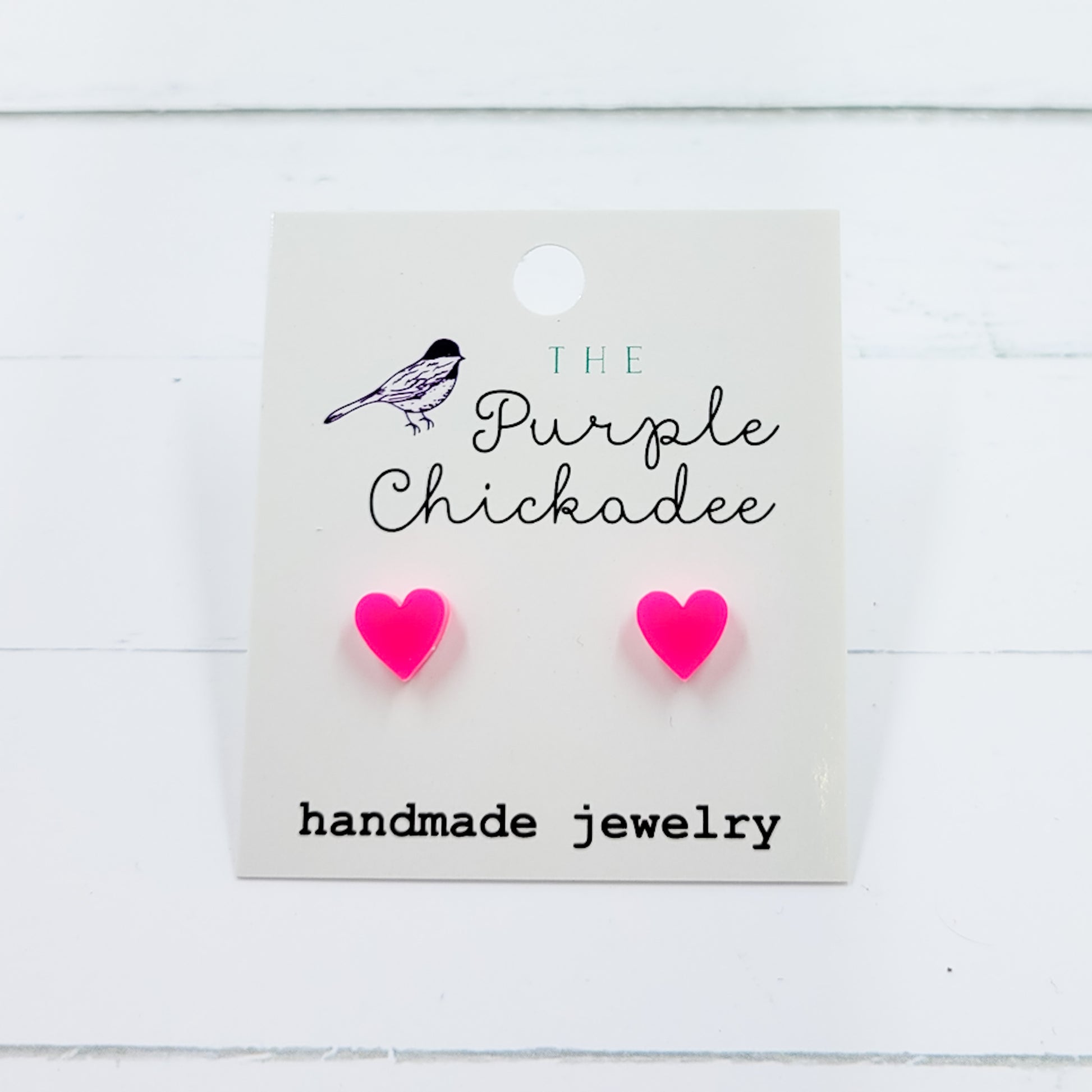 Itty Bitty Hot Pink Heart Acrylic Earrings - Titanium Hypoallergenic