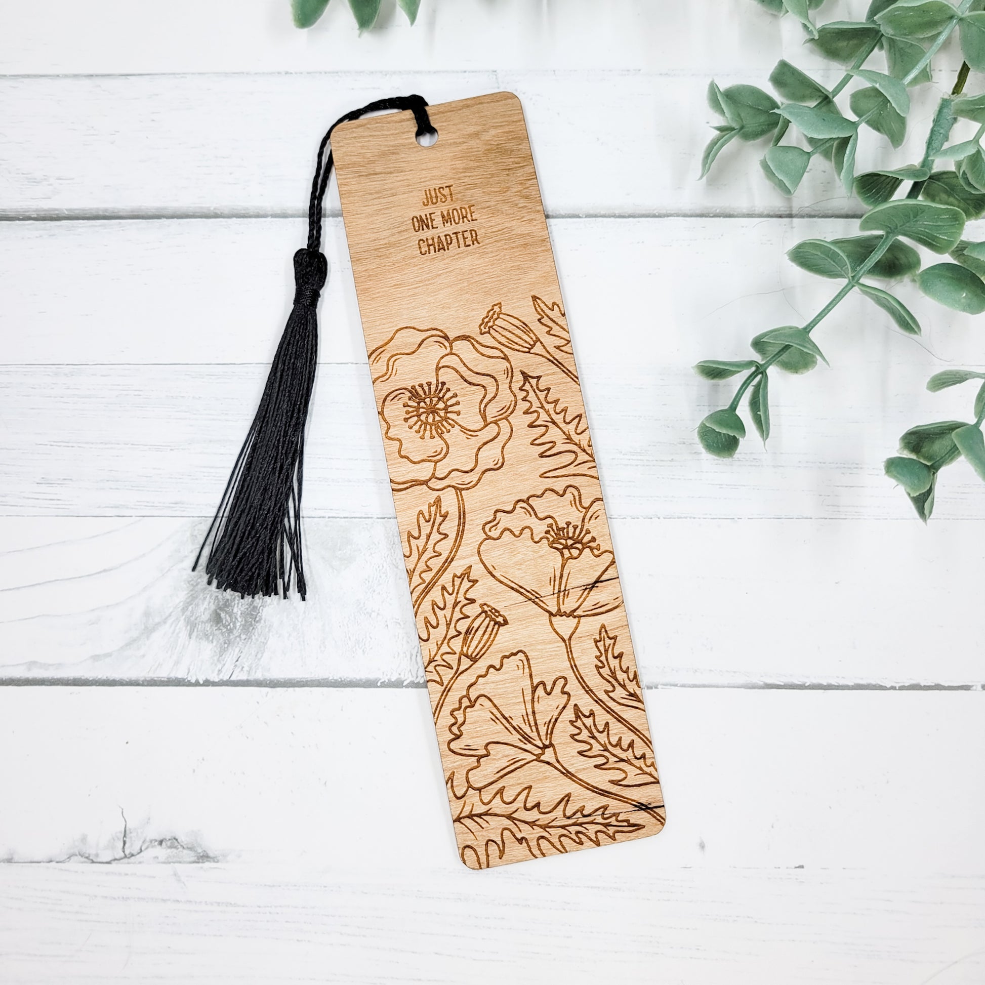 Bookmark is engraved on cherry wood and may have a slight curve due to the thinness of the wood.