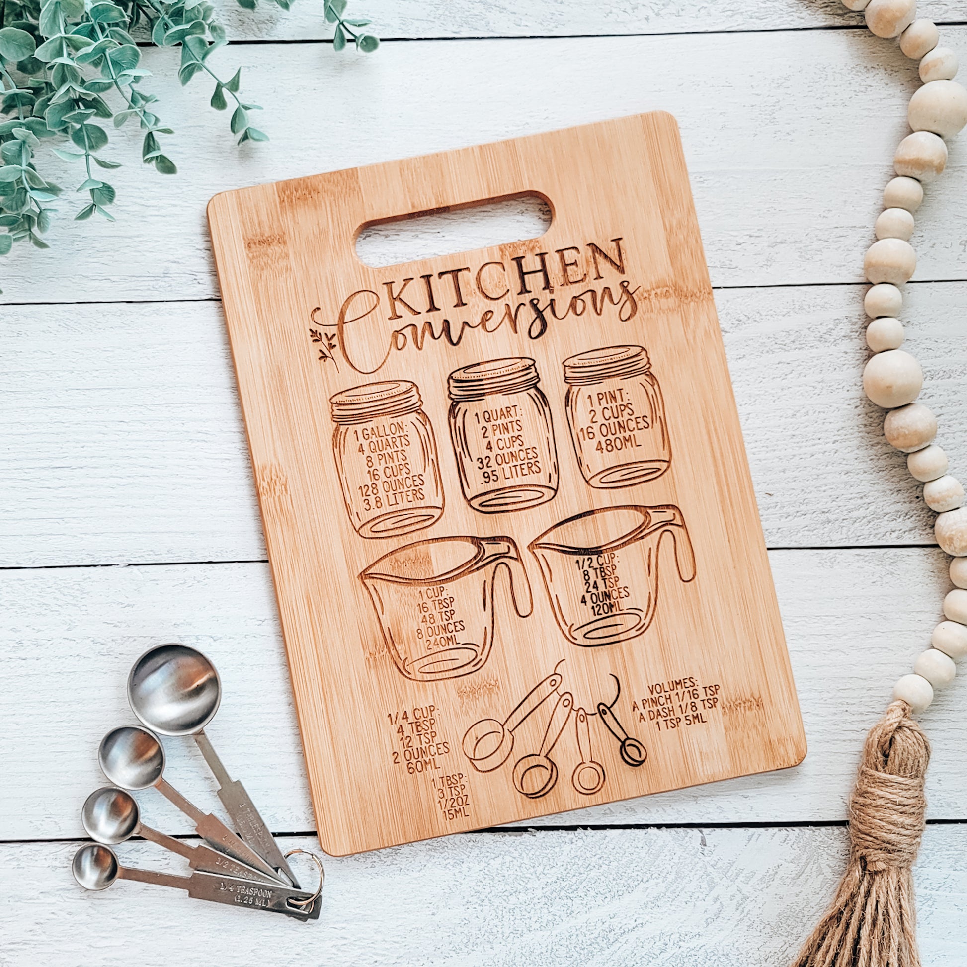 Have you ever needed to convert a measurement when you're cooking? Add this cute engraved bamboo cutting board to your kitchen décor and never have to look up a conversion!