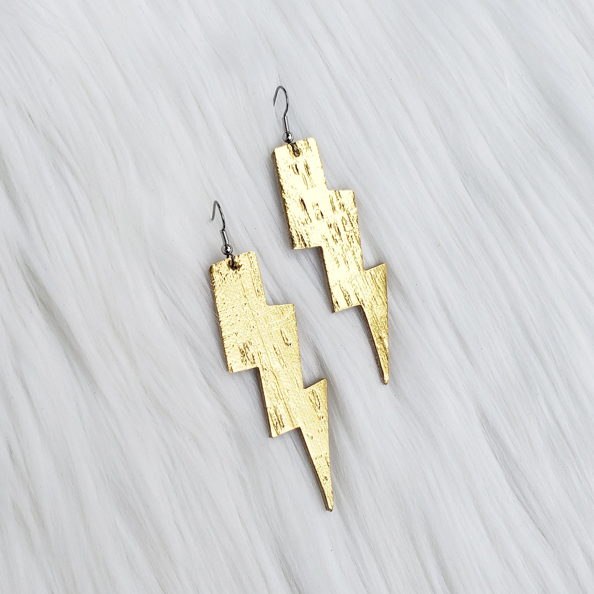 Metallic Gold Lightning Bolt Leather Earrings