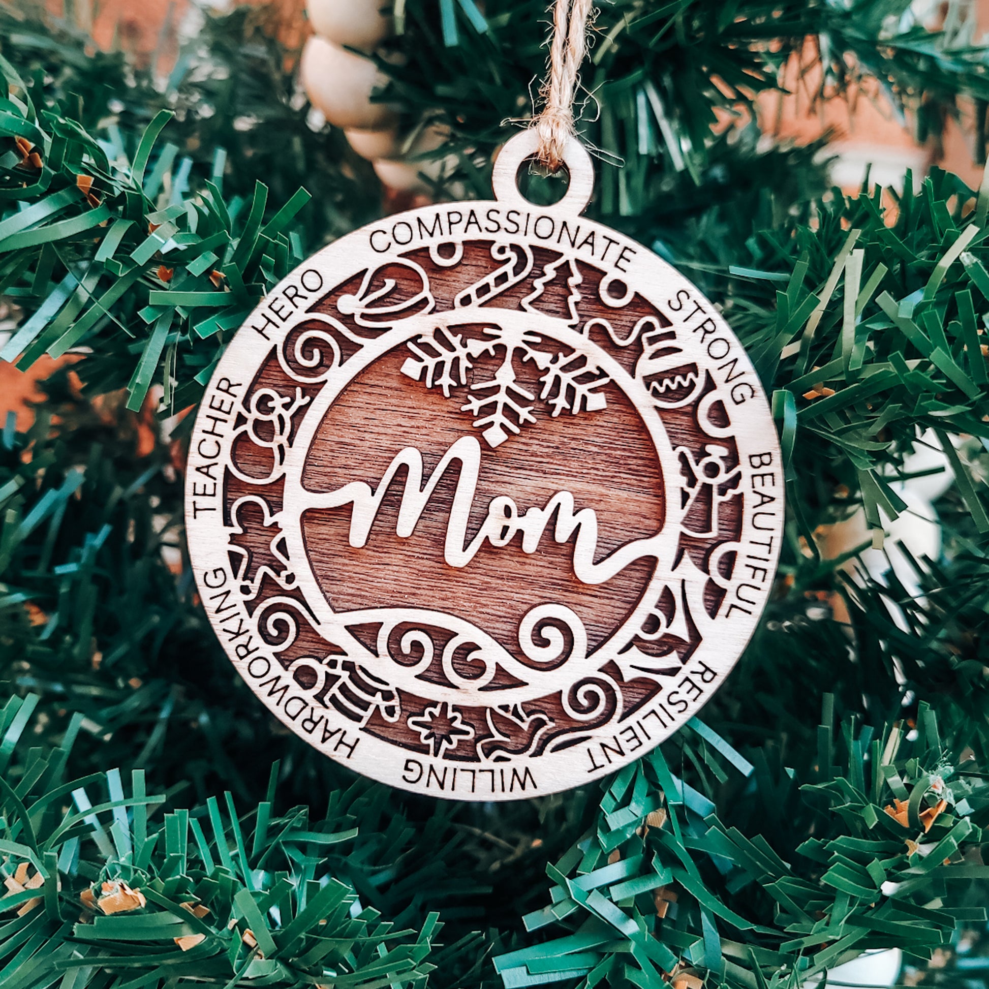 Ornaments are made from birch wood and may naturally darken over time. Ornaments measure 3.5 x 3.75" and come with twine for hanging.