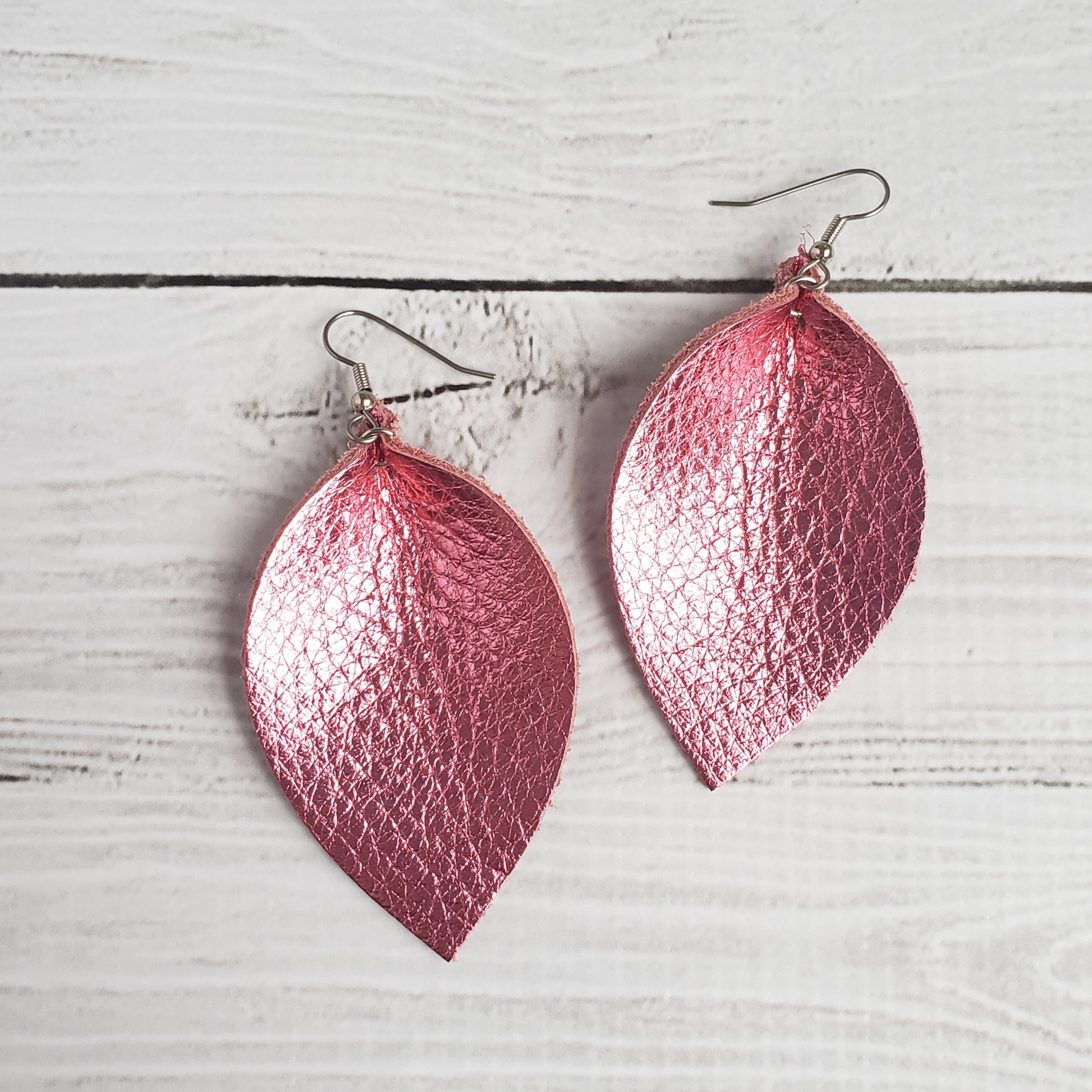 Our pinched leaf style earrings are so lightweight you may forget you are wearing them! All earring wires are stainless steel and nickel and lead free!