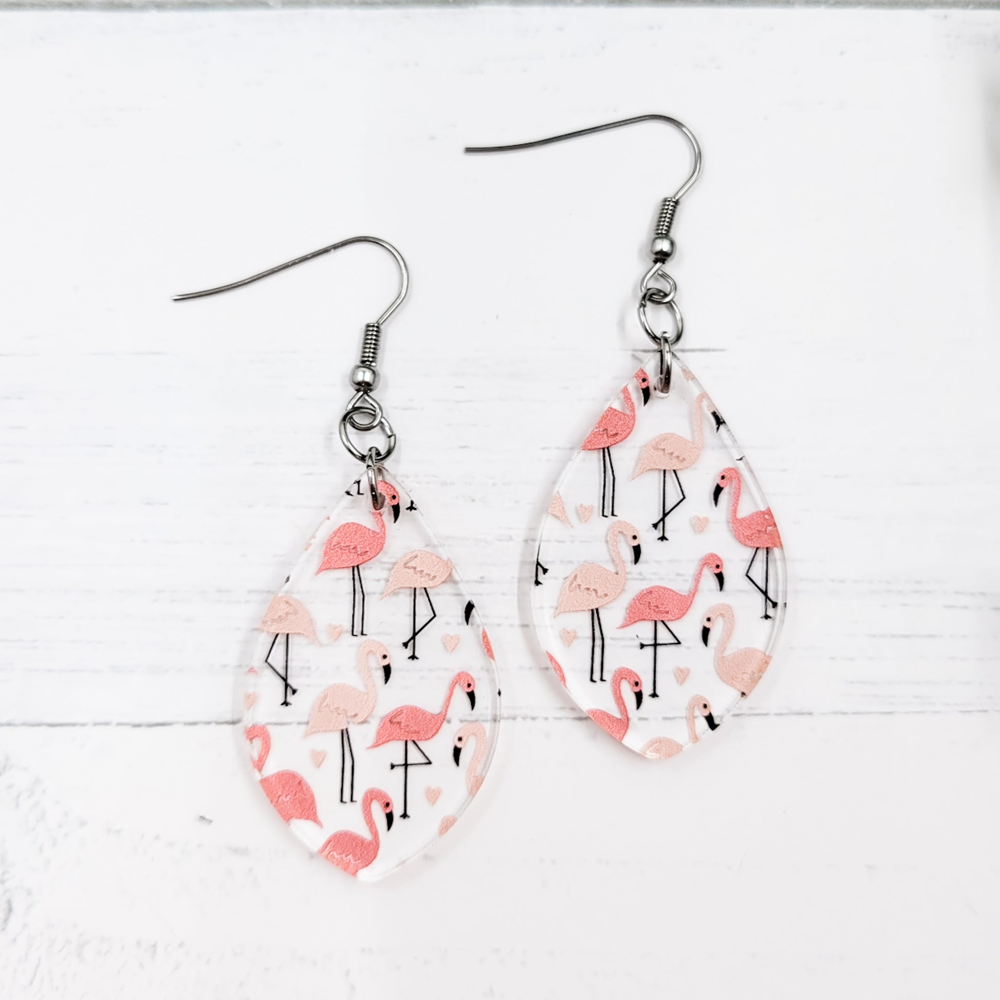 Pink Flamingos Acrylic Pointed Teardrop Dangle Earrings