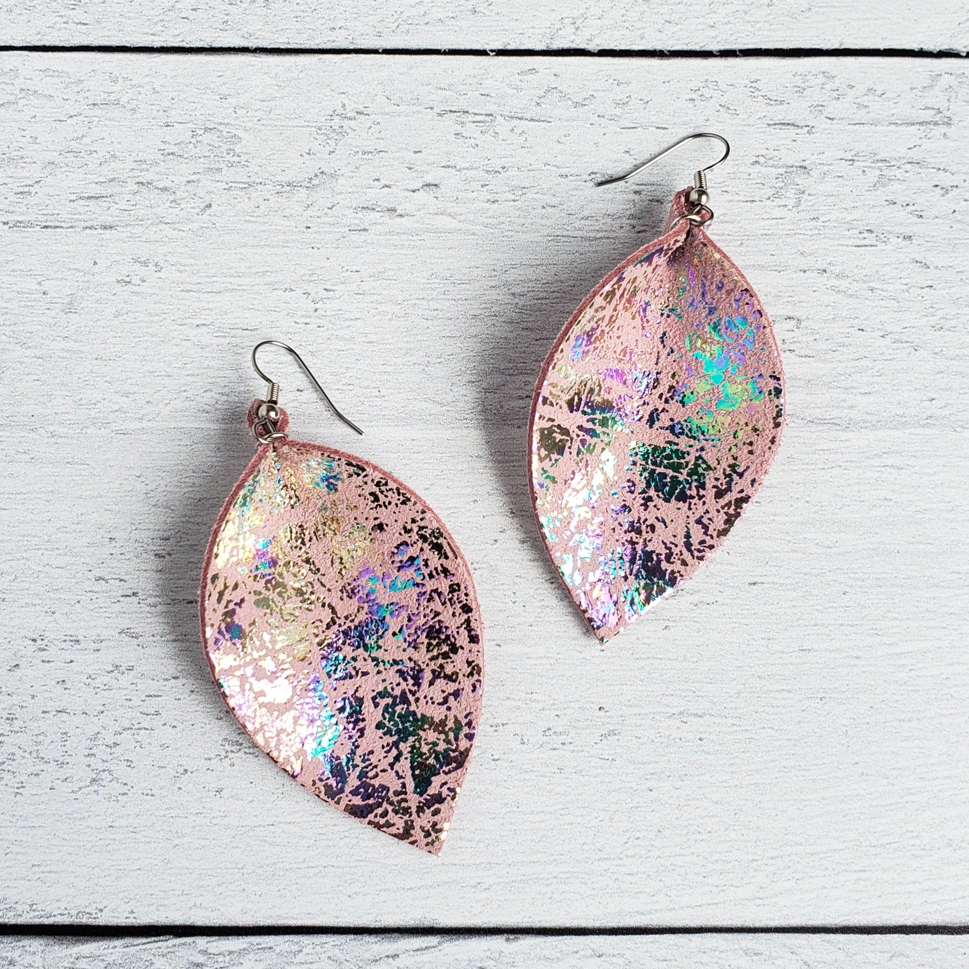 Pink Rainbow Mermaid Leather Leaf Earrings