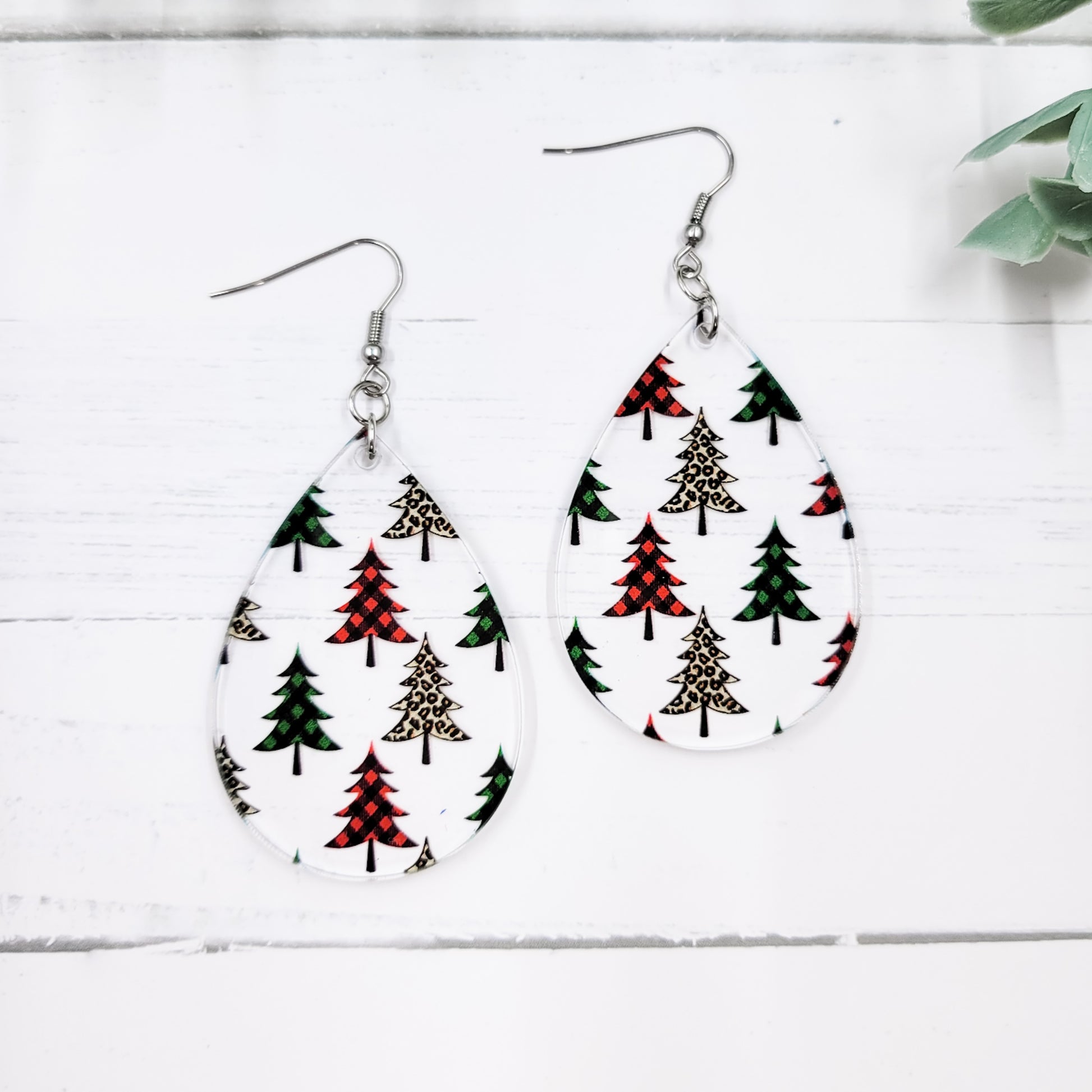 Plaid Trees Teardrop Acrylic Dangle Earrings