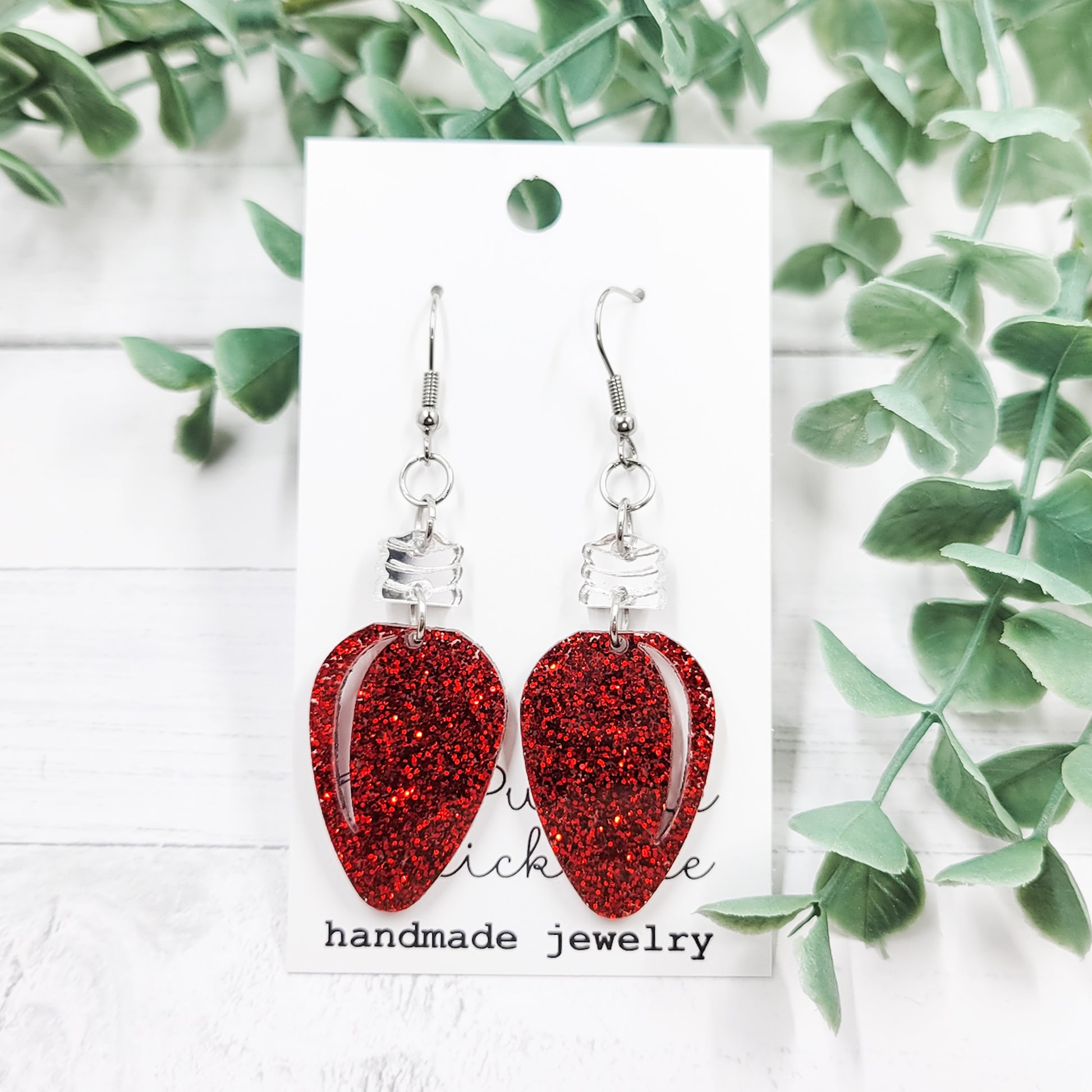 Red Glitter Christmas Bulb Acrylic Dangle Earrings