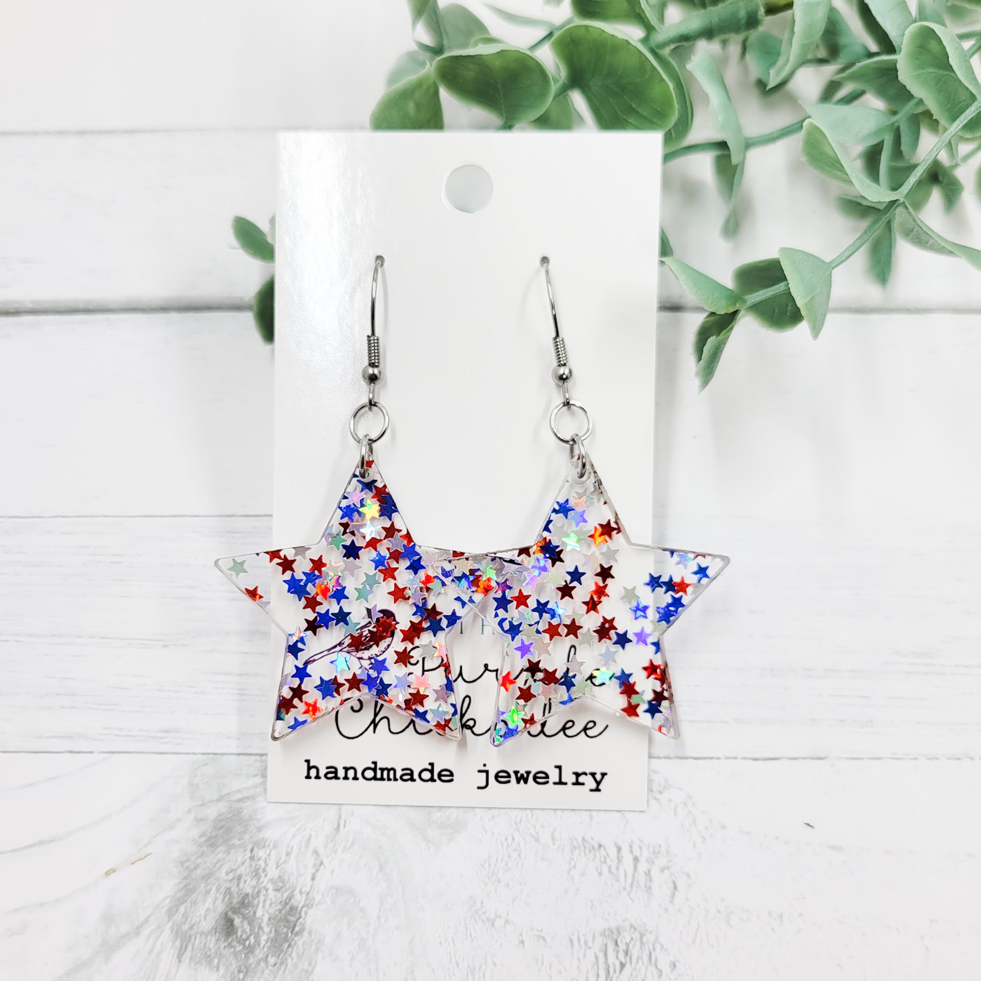 Red, White, and Blue Holographic Stars Acrylic Star Dangle Earrings