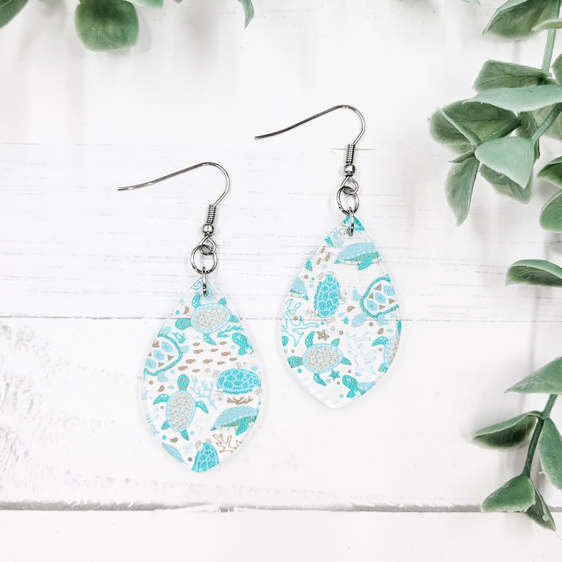 Sea Turtles Acrylic Pointed Teardrop Dangle Earrings
