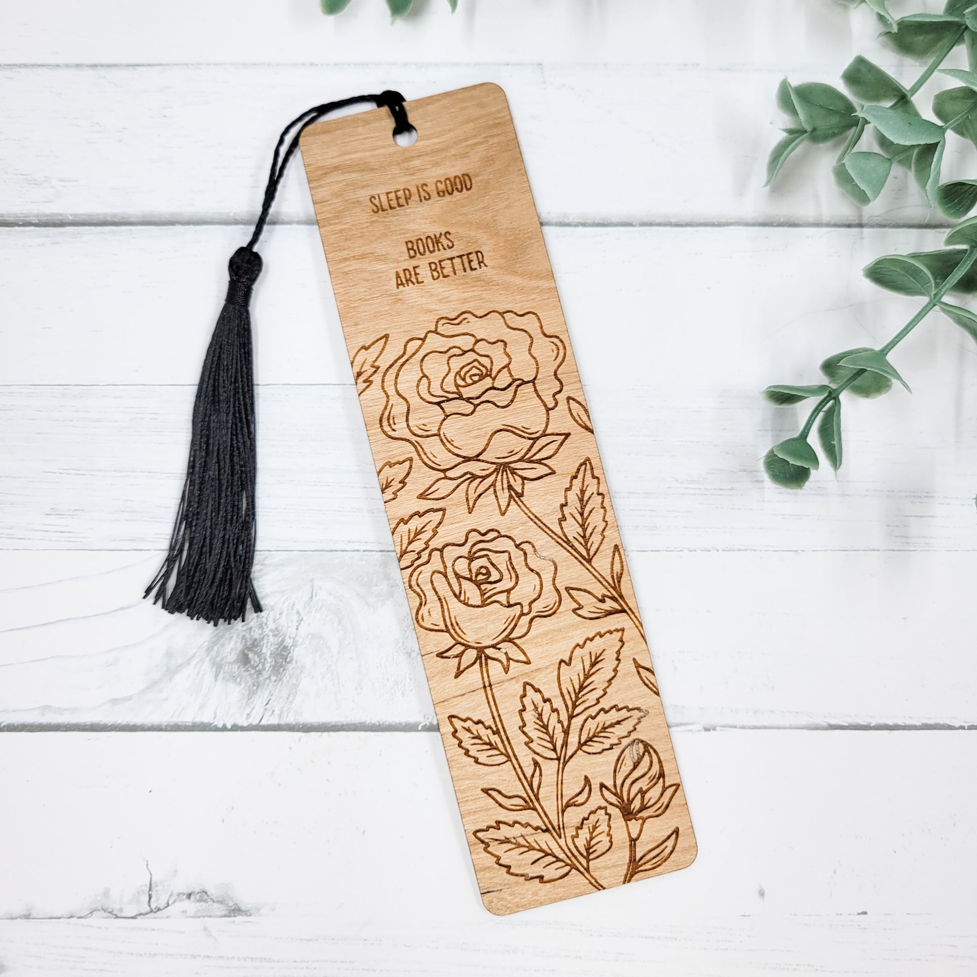 Sleep Is Good Books Are Better Floral Wooden Bookmark