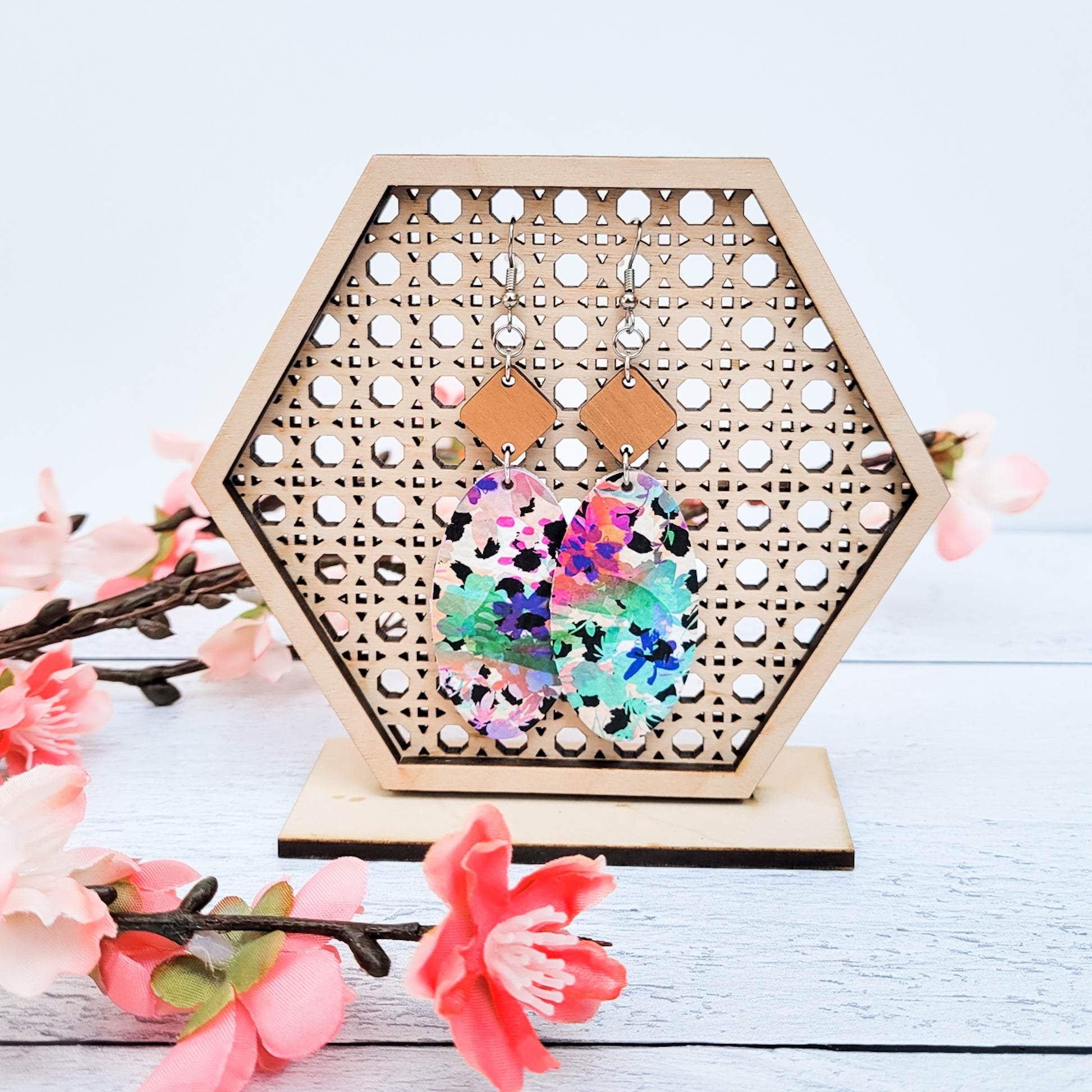 Listing is for stand only. No earrings or props are included. Second photo shows all sizes available. This listing is for one large sized stand.