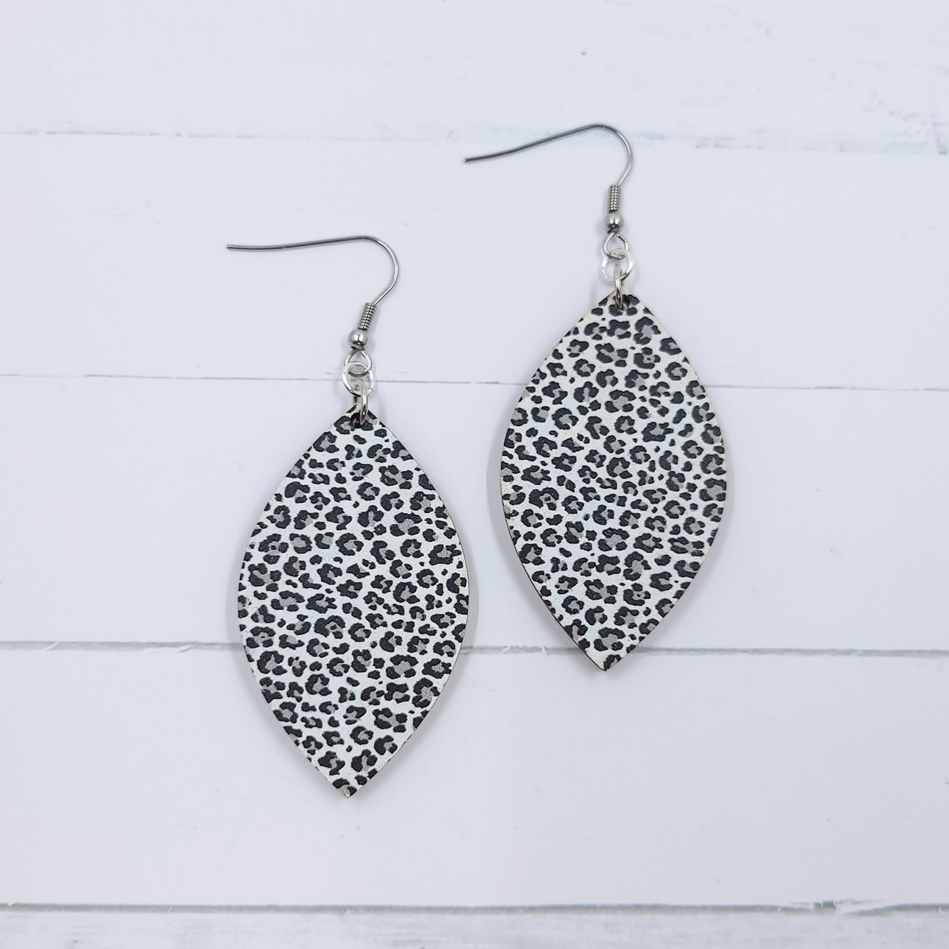 Snow Leopard Pointed Petal Wooden Dangle Earrings