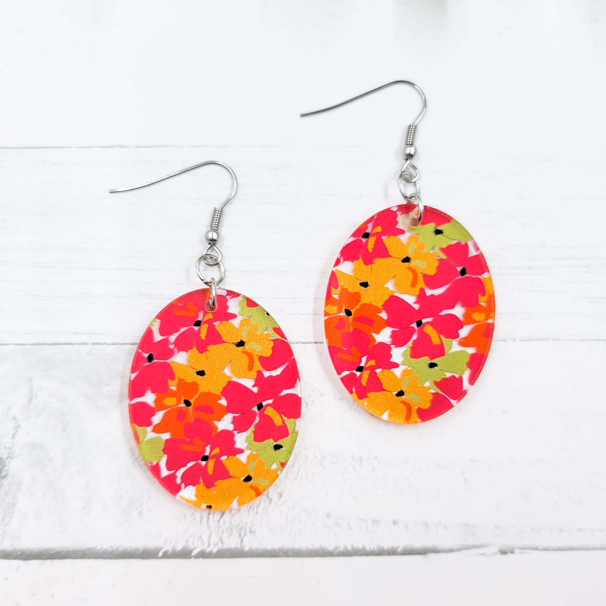 Summer Floral Acrylic Teardrop Dangle Earrings