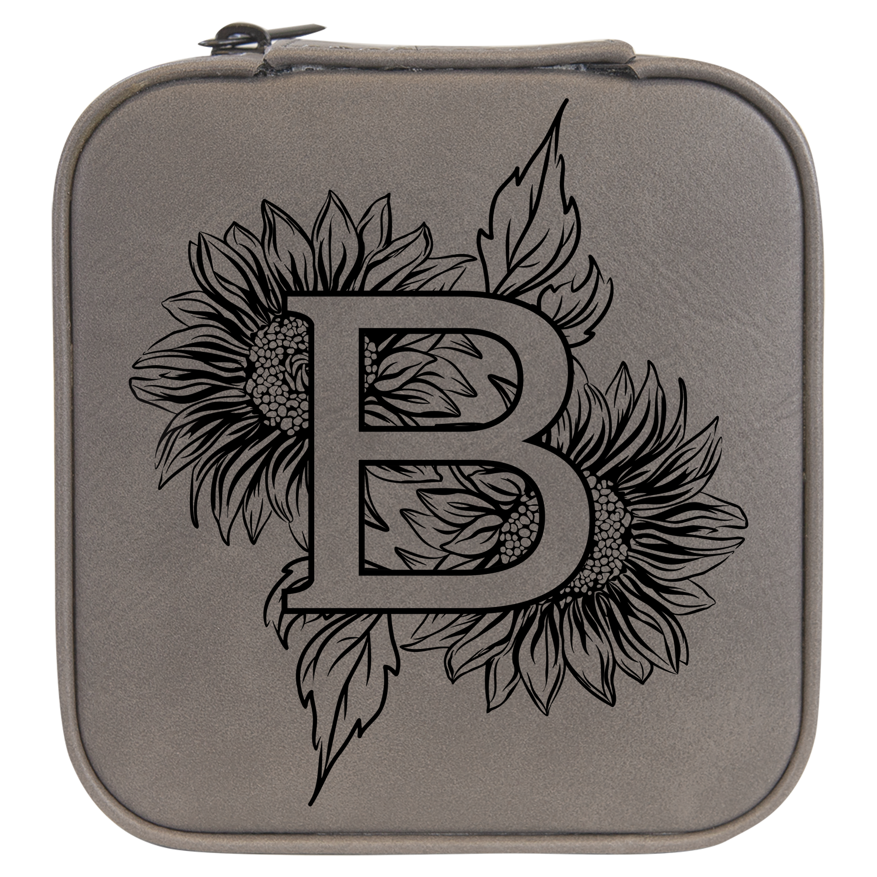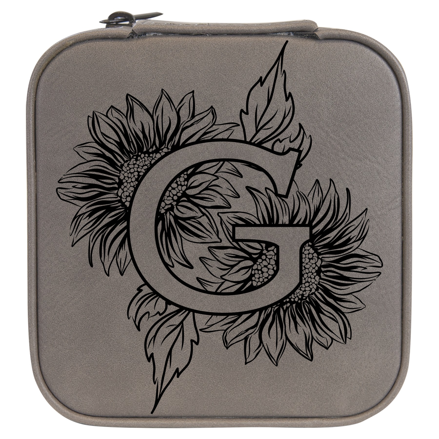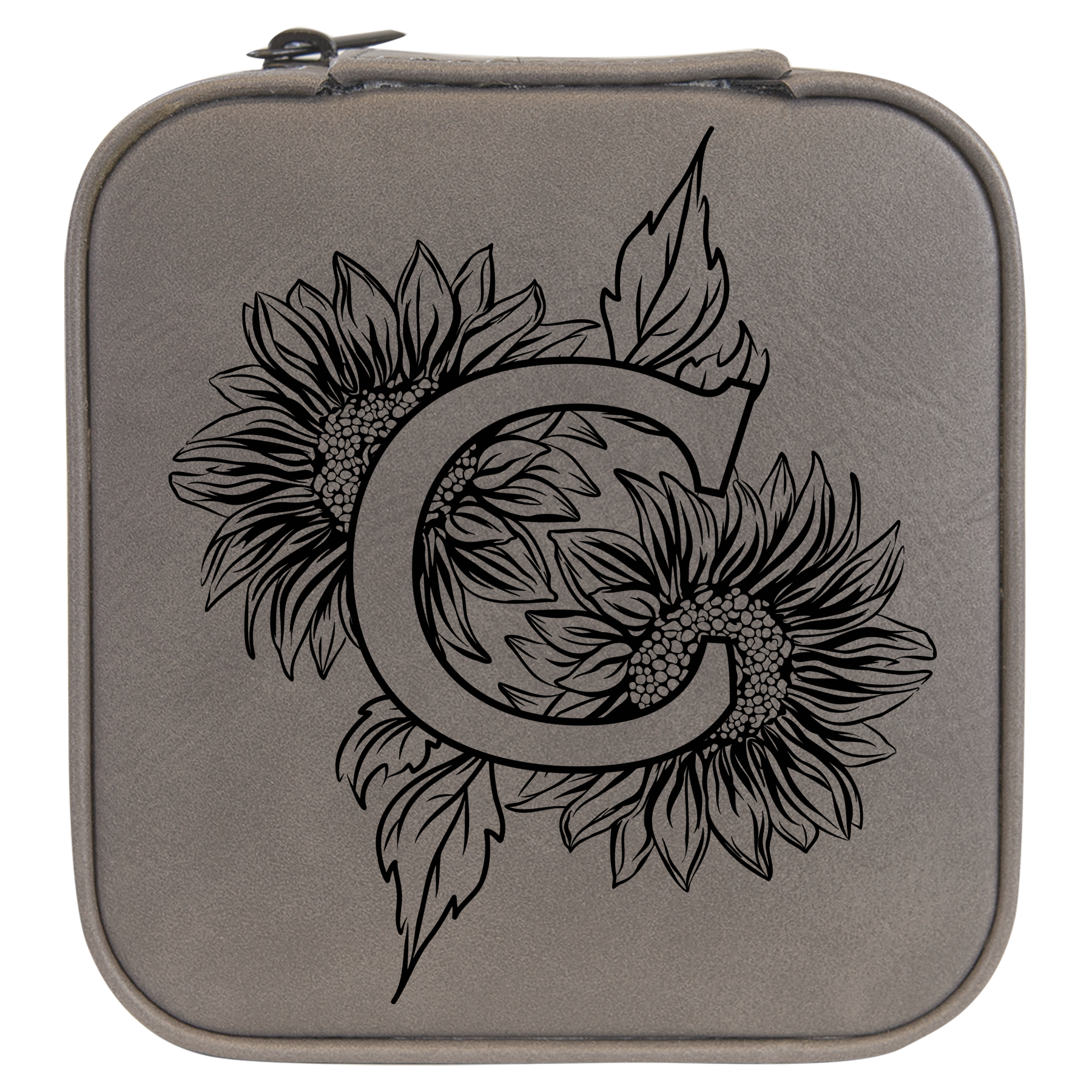 Sunflower Letter Monogram Travel Jewelry Box - Grey