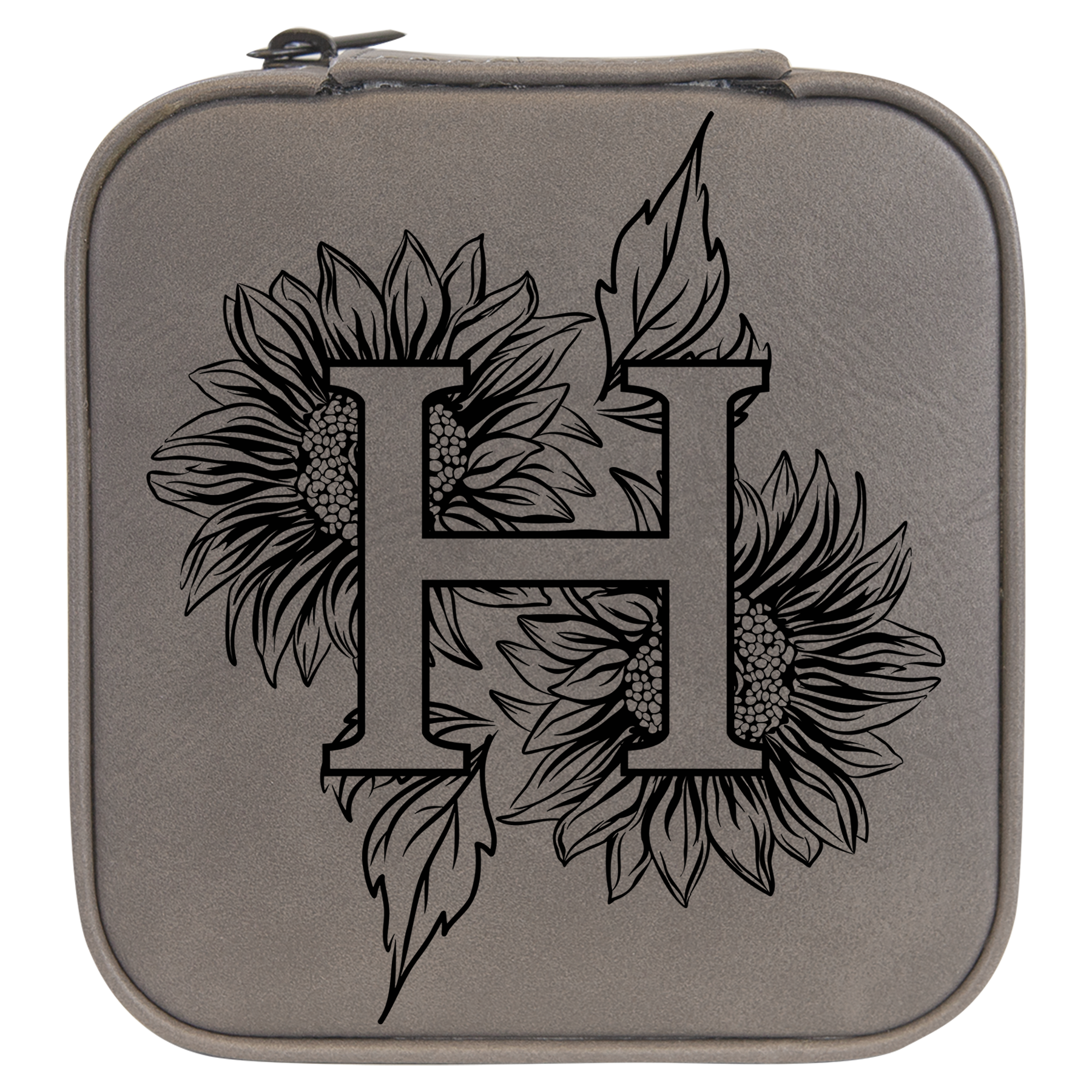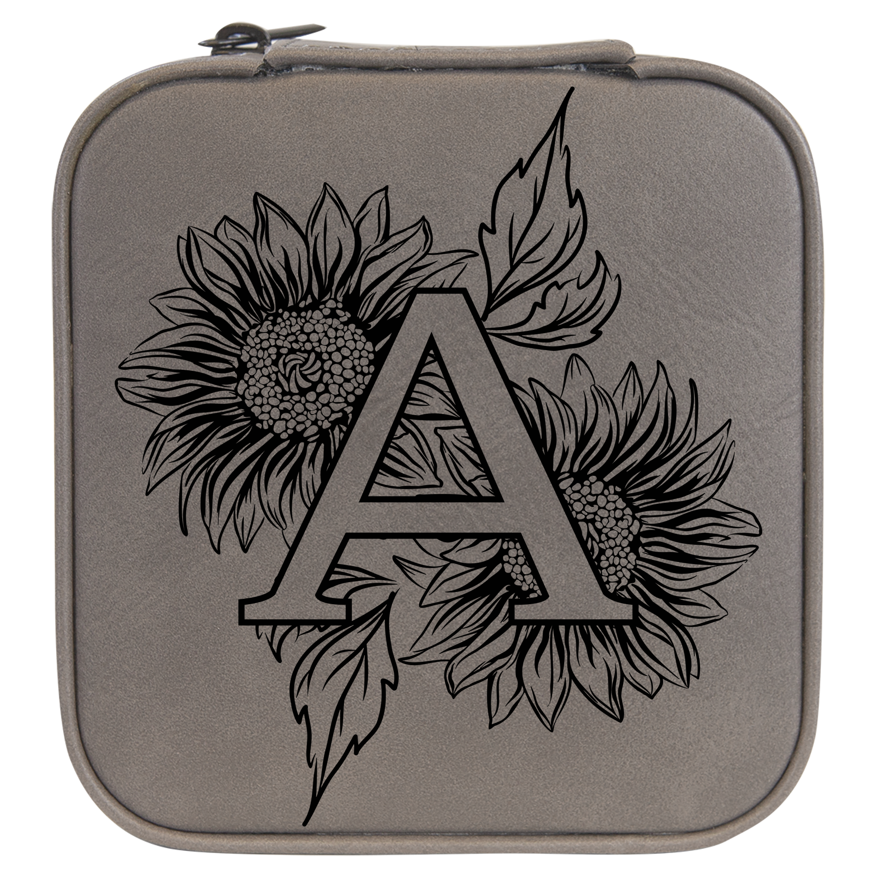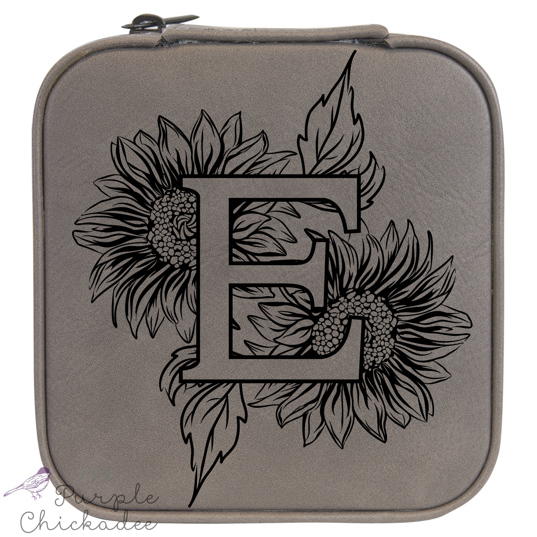 Sunflower Letter Monogram Travel Jewelry Box - Grey