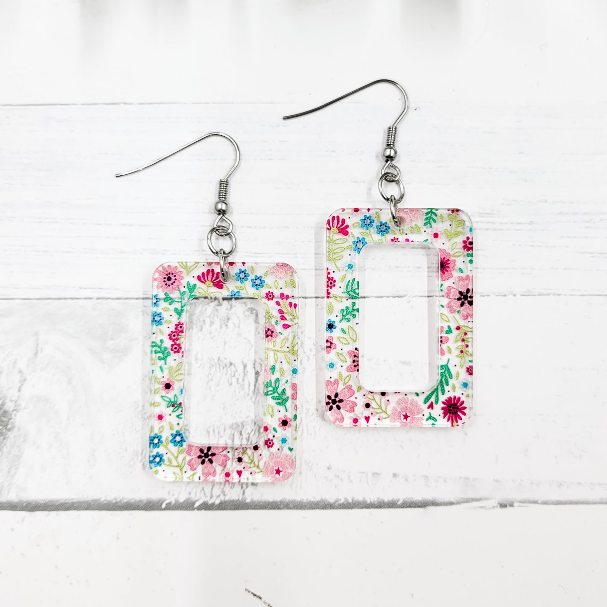 Tropical Micro Floral Acrylic Open Rectangle Dangle Earrings