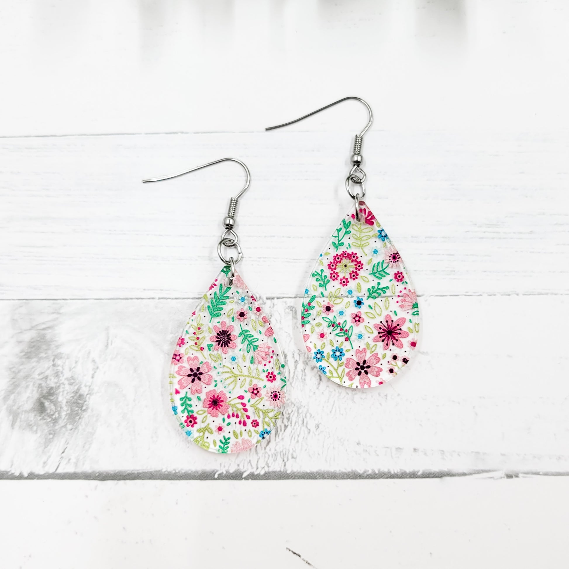 Tropical Micro Floral Acrylic Teardrop Dangle Earrings