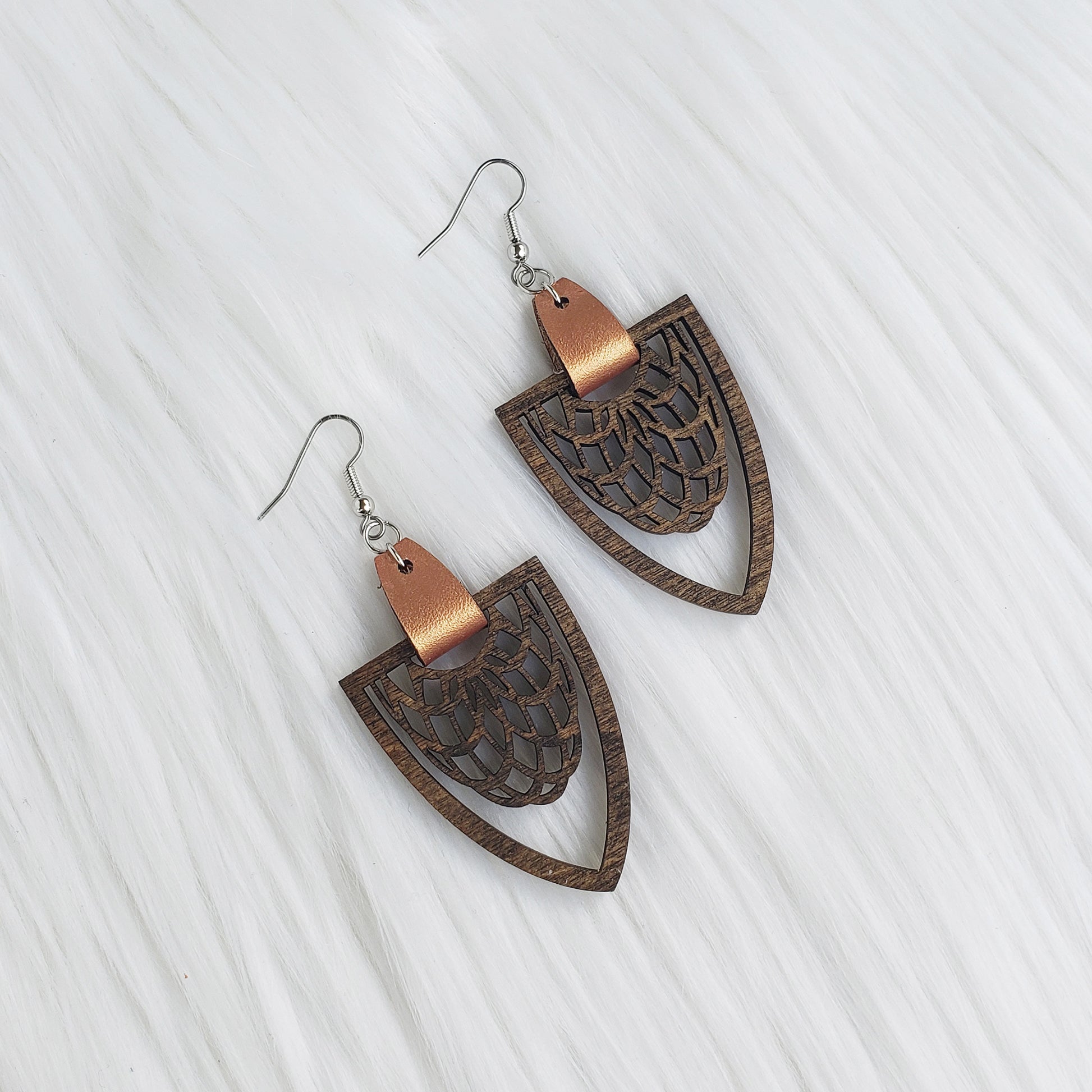 Add some flair with these lightweight wooden filigree earrings!