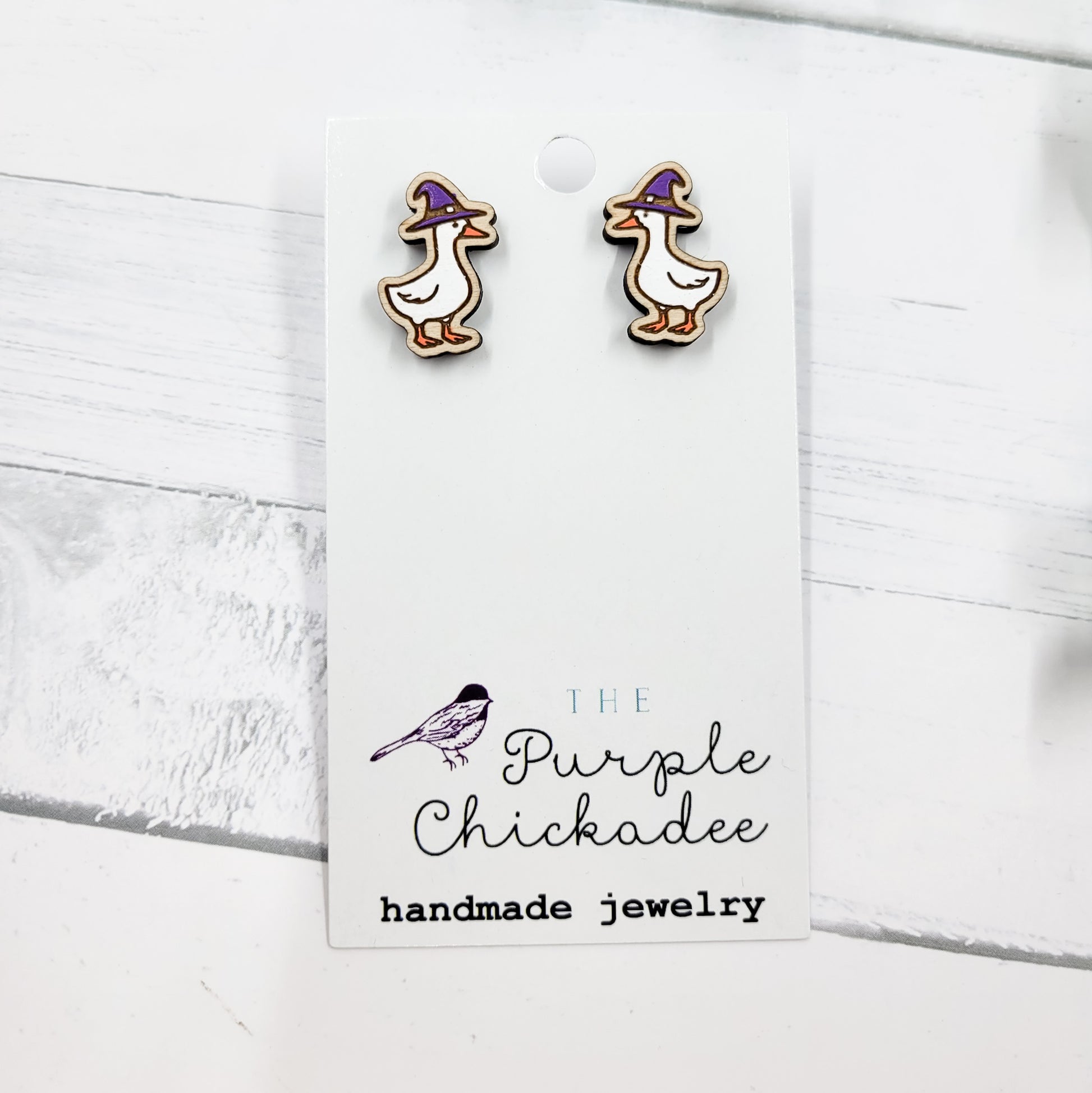Witch Hat Goose Handpainted Wooden Stud Earrings