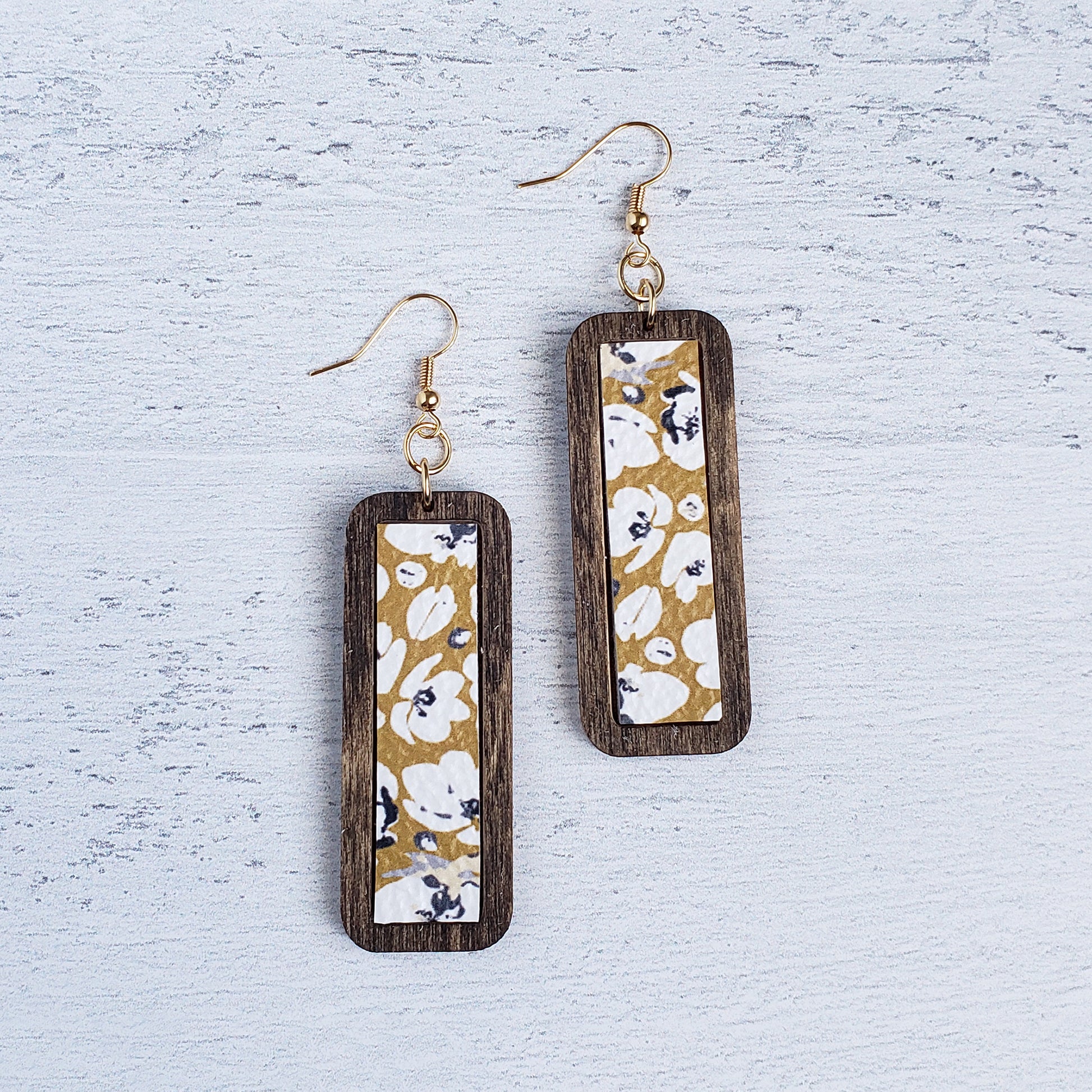 Wooden Bar - Mustard Poppies Leather Earrings