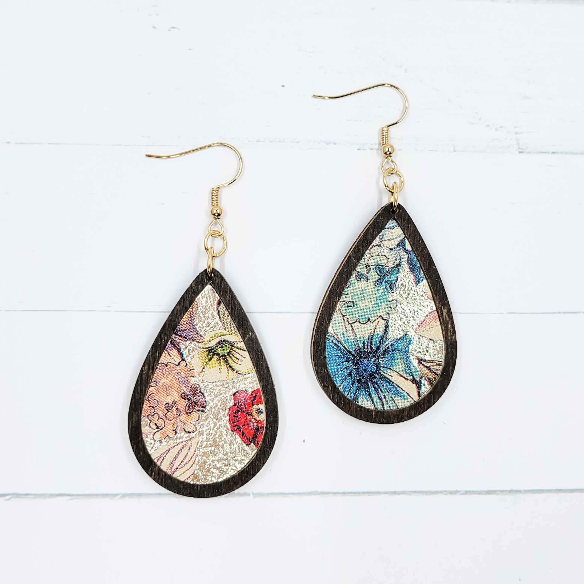 Wooden Teardrop - Metallic Summer Garden Leather Earrings